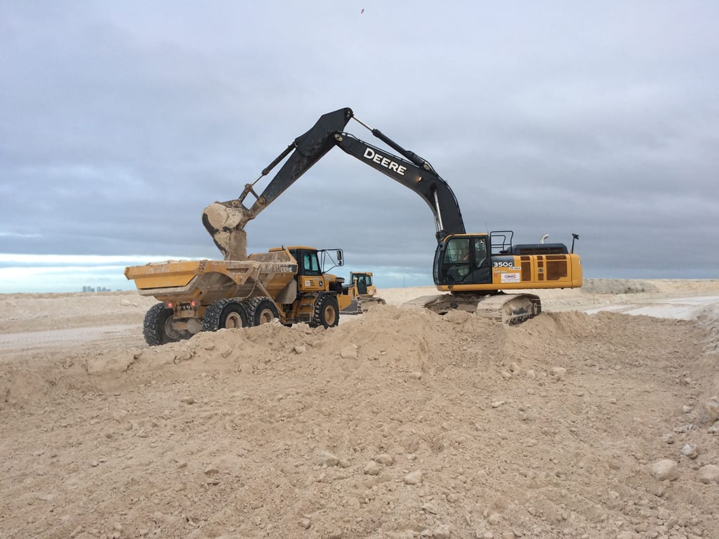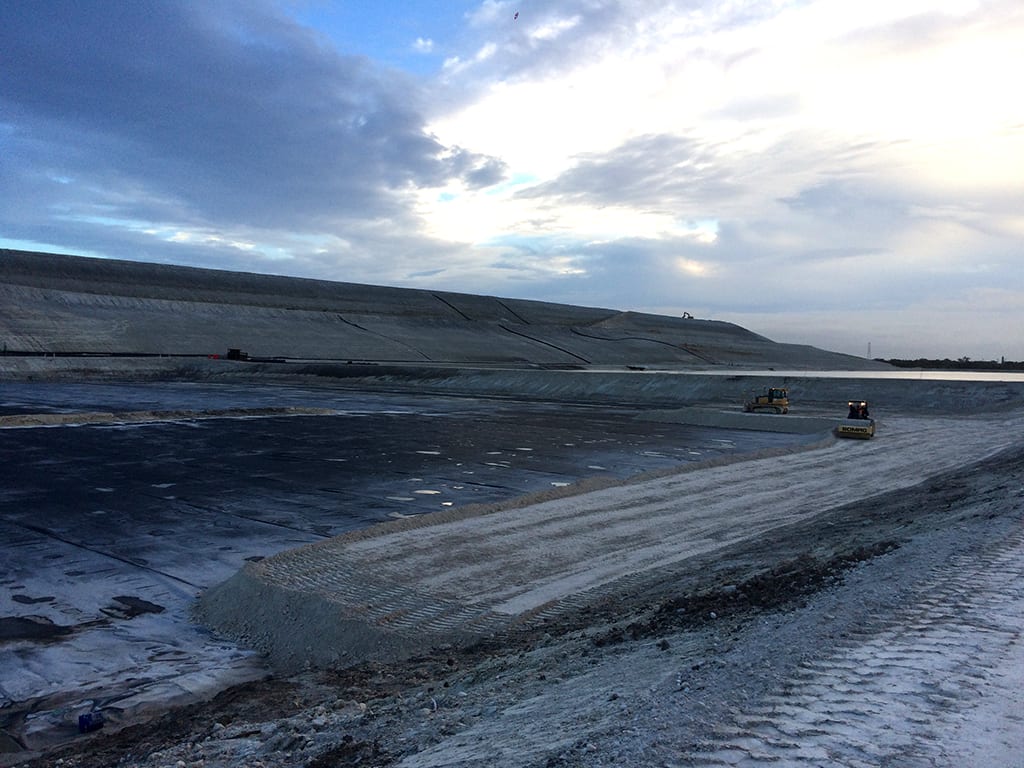 Milestone number one was the completion of excavating, conditioning, and hauling out roughly 31,000CY of lime sludge material to an onsite dump location. To reach the second milestone, COMANCO excavated, hauled, and placed nearly 45,000CY of compacted gypsum for the liner subgrade. The third and final milestone hit this past week and happened when the crew began to excavate, haul, and place what will be 60,000CY of gypsum liner cover.