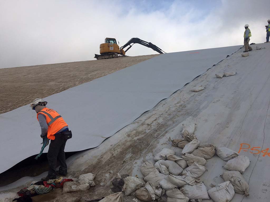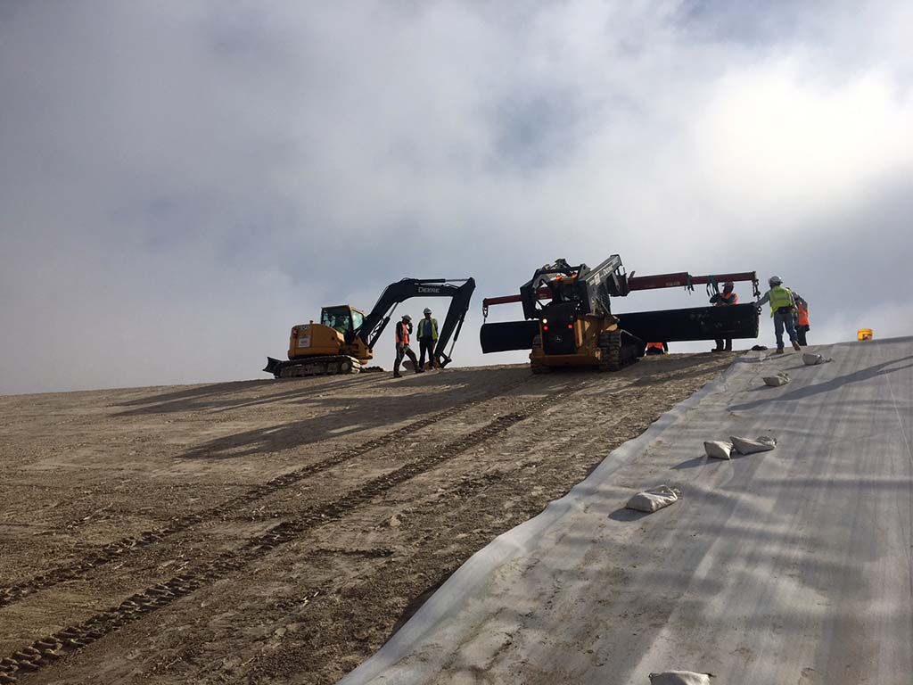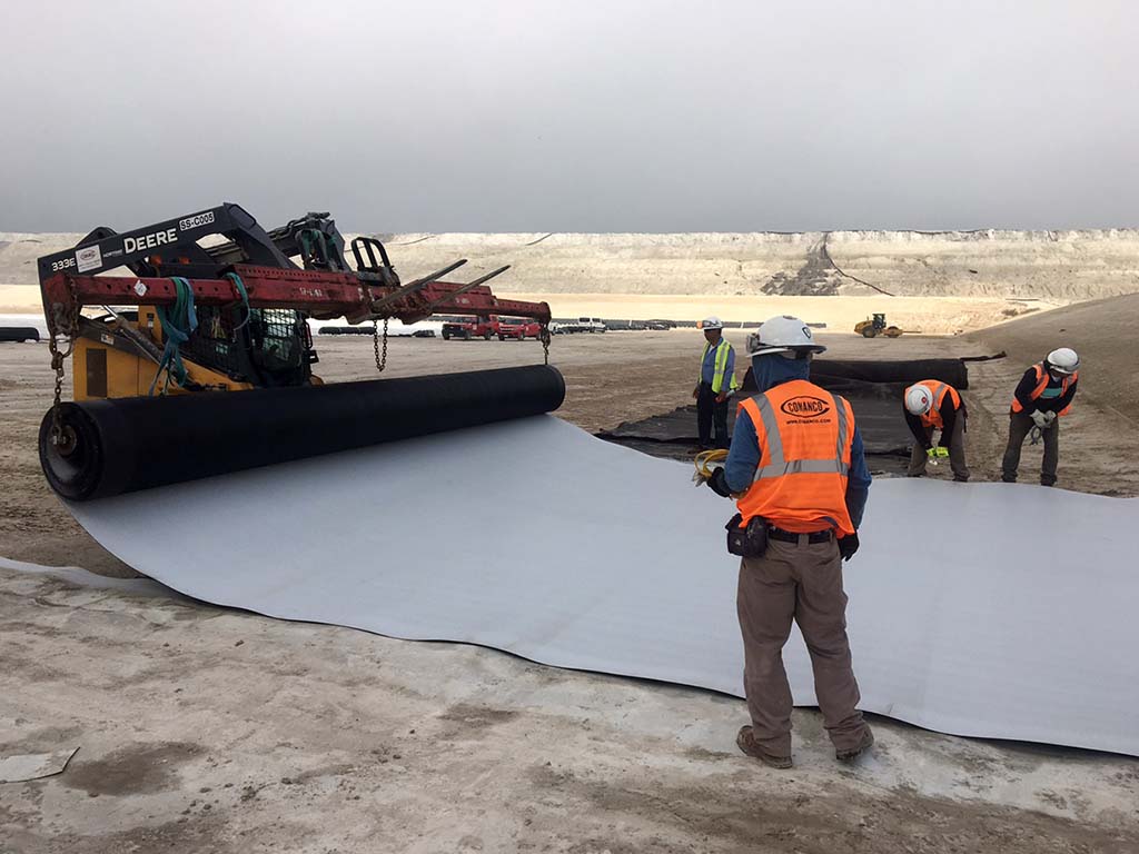 Neither mountains nor valleys can keep COMANCO from getting the job done! Under the watchful eye of Superintendent Martin Calderon Sr., the COMANCO crew continues to make progress in south Louisiana. From steep slopes to flat valleys, the well trained COMANCO crew shows off their technique deploying textured geomembrane at this fertilizer facility. The crew exhibits the step-by-step process needed for a quality installation.