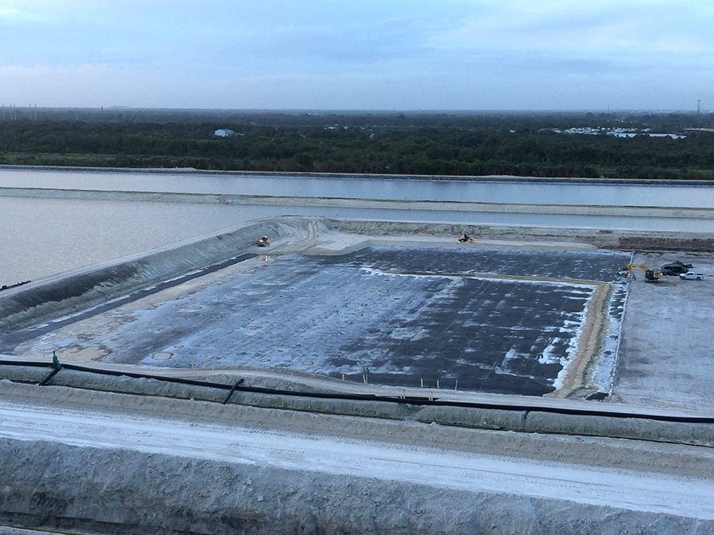 Milestone number one was the completion of excavating, conditioning, and hauling out roughly 31,000CY of lime sludge material to an onsite dump location. To reach the second milestone, COMANCO excavated, hauled, and placed nearly 45,000CY of compacted gypsum for the liner subgrade. The third and final milestone hit this past week and happened when the crew began to excavate, haul, and place what will be 60,000CY of gypsum liner cover.