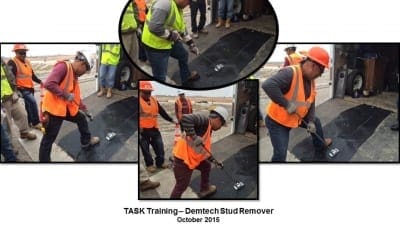 A group of COMANCO employees in Georgia received Task Training on the Demtech stud remover tool. Jorge Barrantes, Superintendent of the crew, took advantage of a rainy day to conduct this training. Task training is continuously provided to all employees …