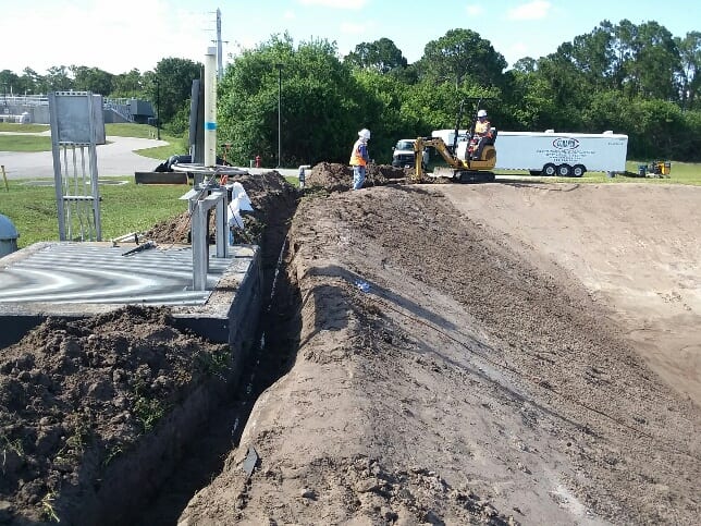 COMANCO has begun the first of two 45mil Reinforced Polypropylene pond liner replacements at a Waste Water Treatment Facility in Port St. Lucie, FL. COMANCO will complete one pond at a time, so as not to cause any downtime for the facility. Superintendent Larry Graham and crew are responsible for the demo of the existing liner, subgrade re-grading and compaction, and the installation of the new 45mil RPP liner. Despite the constant threat of typical Florida inclement weather, the crew is working safely and efficiently for our client.