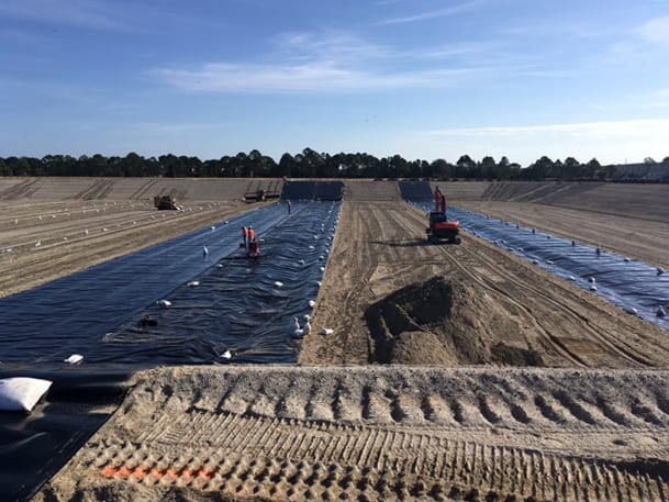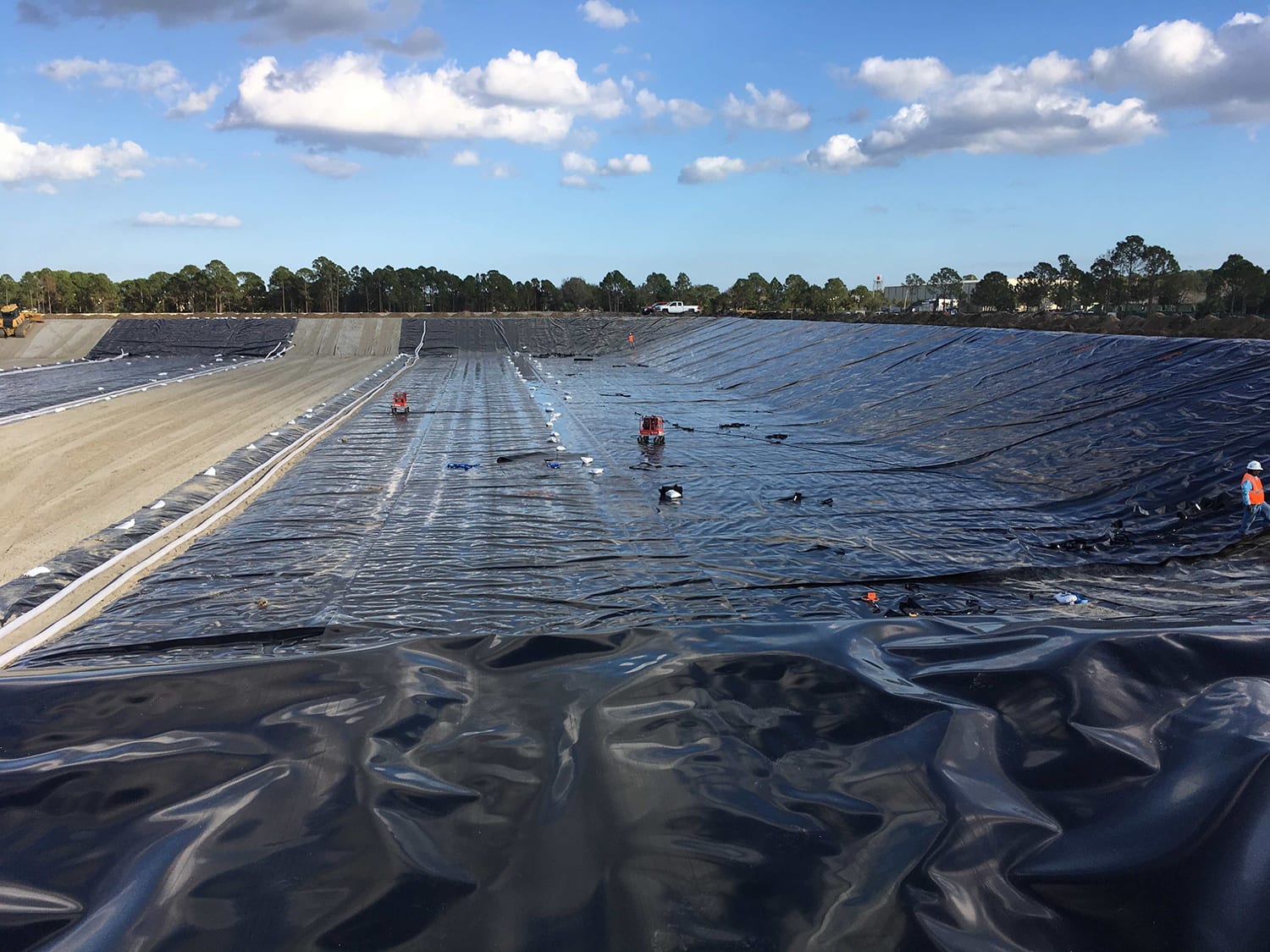 An eight-person crew led by Superintendent Jorge Barrantes began liner deployment last week on three (3) separate detention ponds located near the Eau Gallie River in Melbourne, FL. The scope of work includes a single layer liner system – 1.34M square feet of 40-mil LLDPE geomembrane – as well as 650 LF of embed channel for areas that require concrete tie-in. The crew is well on their way to beat the anticipated schedule and have brought COMANCO’s high level of safety acumen to this new project site.