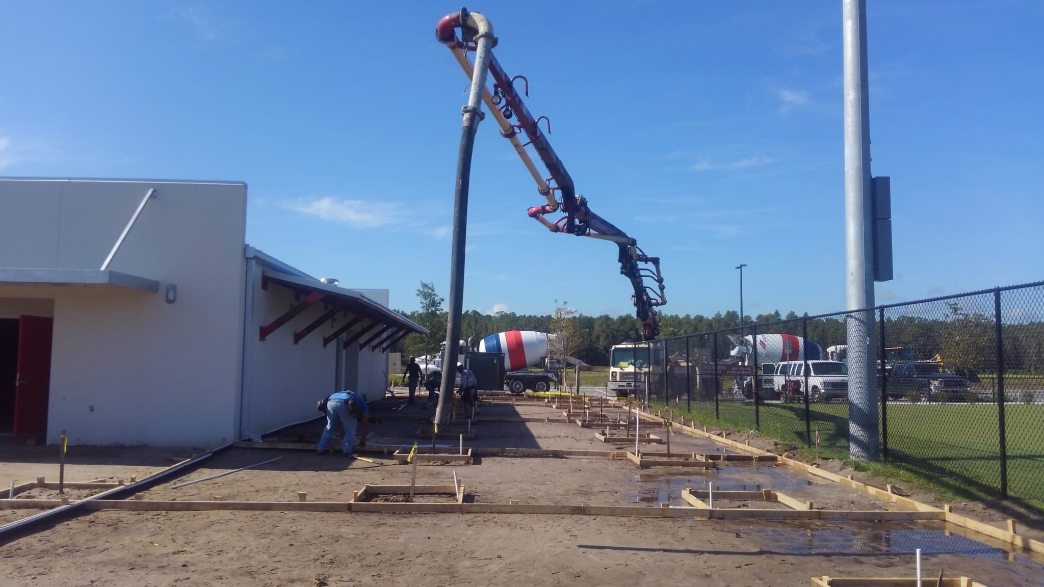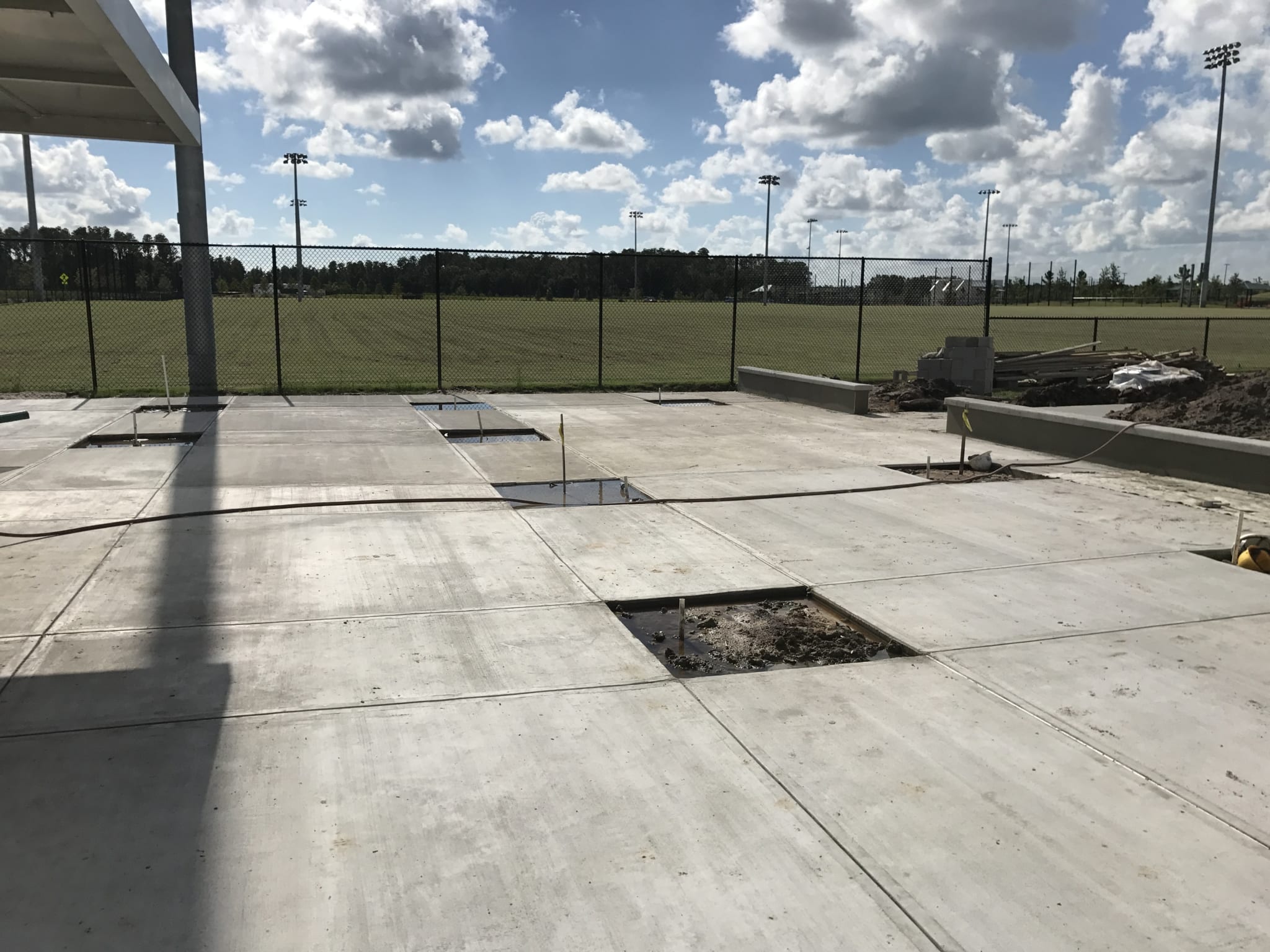 COMANCO reached another milestone at Starkey Ranch District Park as the concrete patio area around the Concession Building has been completed. A masonry seat wall and grill wall was built around the perimeter of the area, and the concrete slab, complete with landscaping block outs was poured and detailed. The stucco work was then completed on the grill wall and seat wall to match the aesthetic look of the building. Next up, the trees will be installed in the openings around the patio, and we will install the picnic tables for the final touch. Once the park is operational, the patio area will be a great place to enjoy the food and snack options the Concession Building will offer.