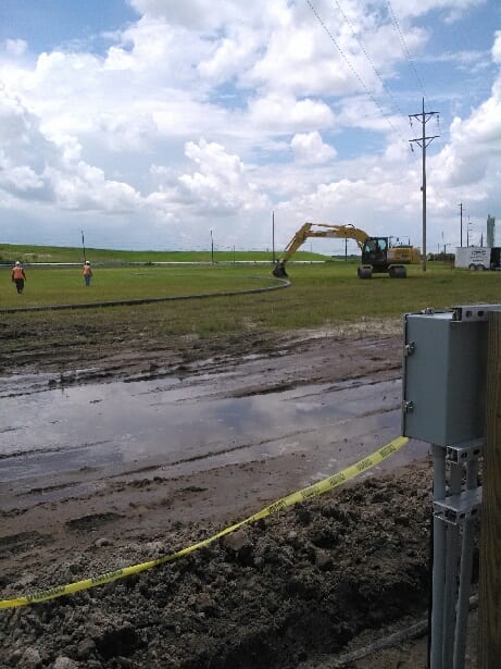 A COMANCO crew recently finished up a small pipe project on a closed chemical plant in Florida.  Project Superintendent Charlie Ingle led the crew with exposing an existing HDPE pipe, fusing it and re-routing it to discharge into a detention pond.  COMANCO closed this site last year and maintenance projects, like this one, are taking place in order to continue to promote proper drainage and storm water flow throughout the site.