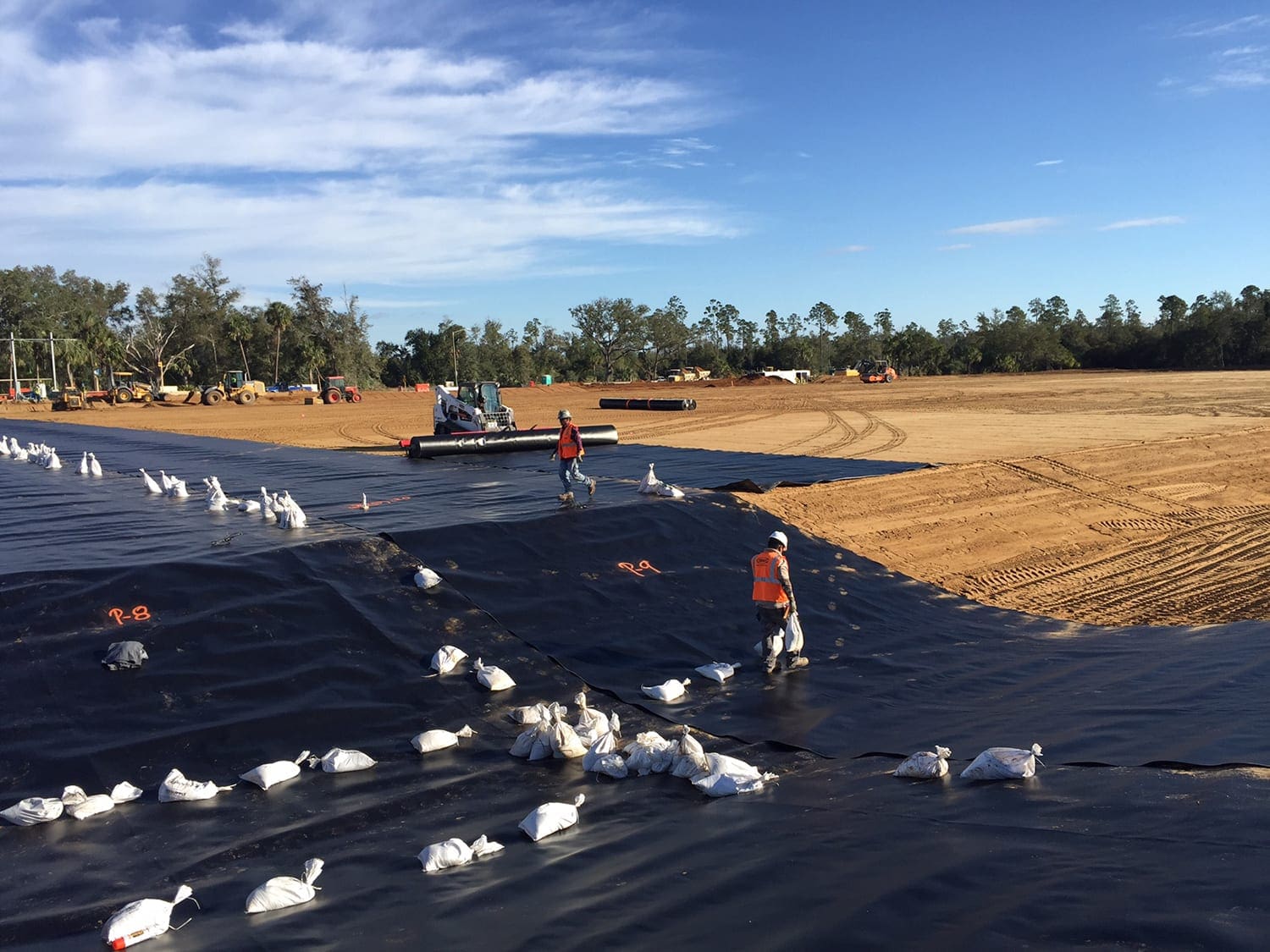 COMANCO recently finished a geotextile, liner, and batten bar installation project in Crystal River, Florida. The first mobilization of this project consisted of installing approximately 190,000 SF of reinforcement geotextile. A protective cover was placed on the geotextile, and then COMANCO returned for a second mobilization. In the second and final mobilization, COMANCO installed 260,000 SF of 60-mil smooth HDPE liner. The liner was connected to a concrete structure using 250 feet of batten bar. Superintendent Jorge Gomez and his 10-man crew completed the project safely while providing excellent quality and service.
