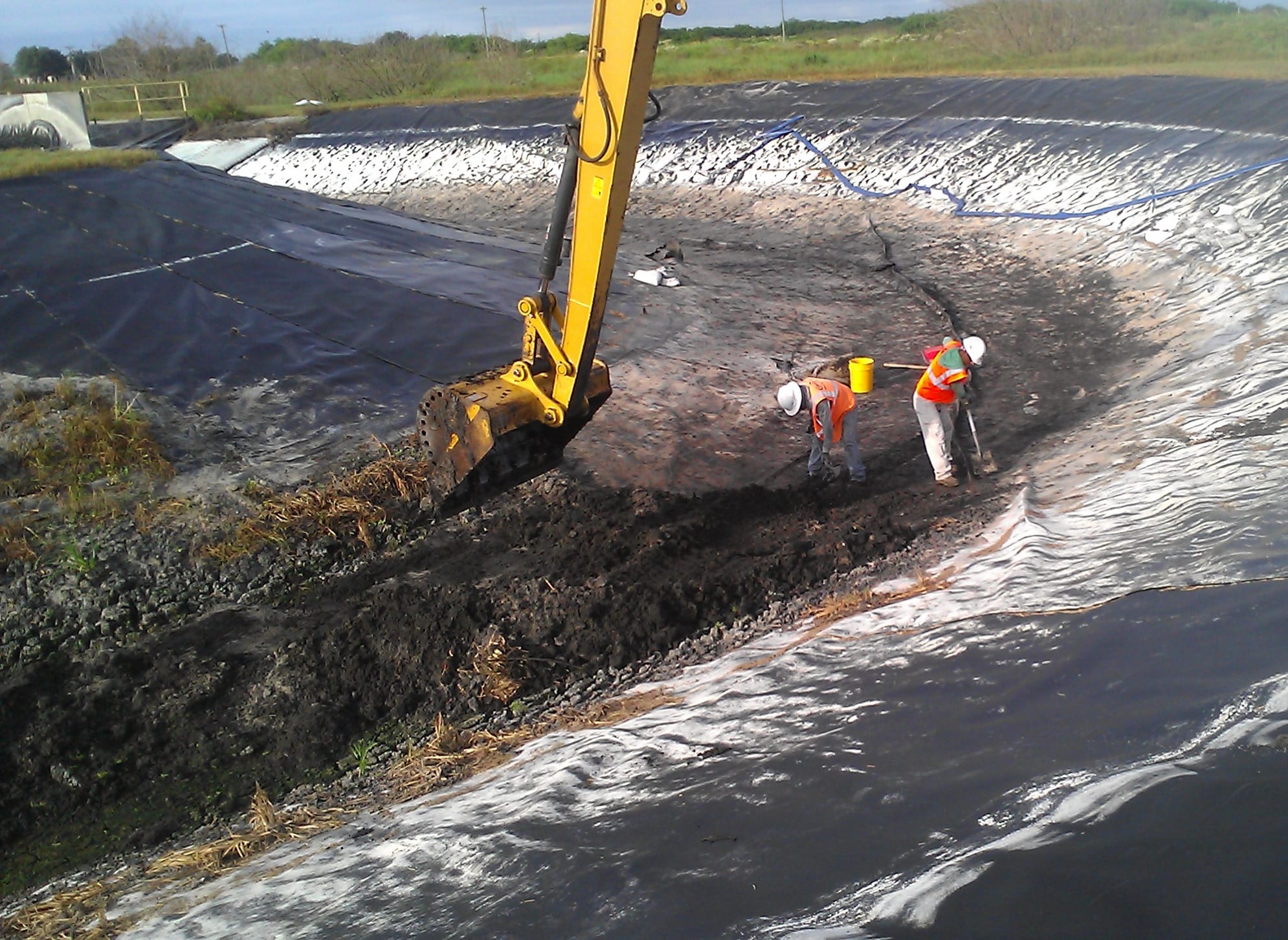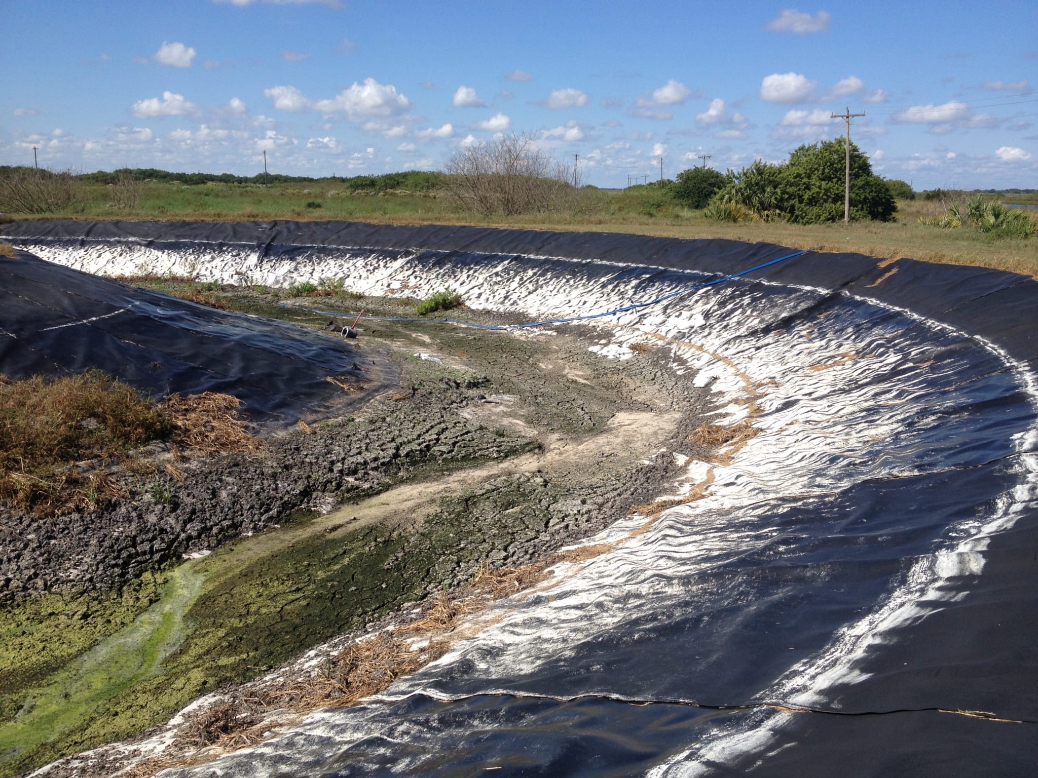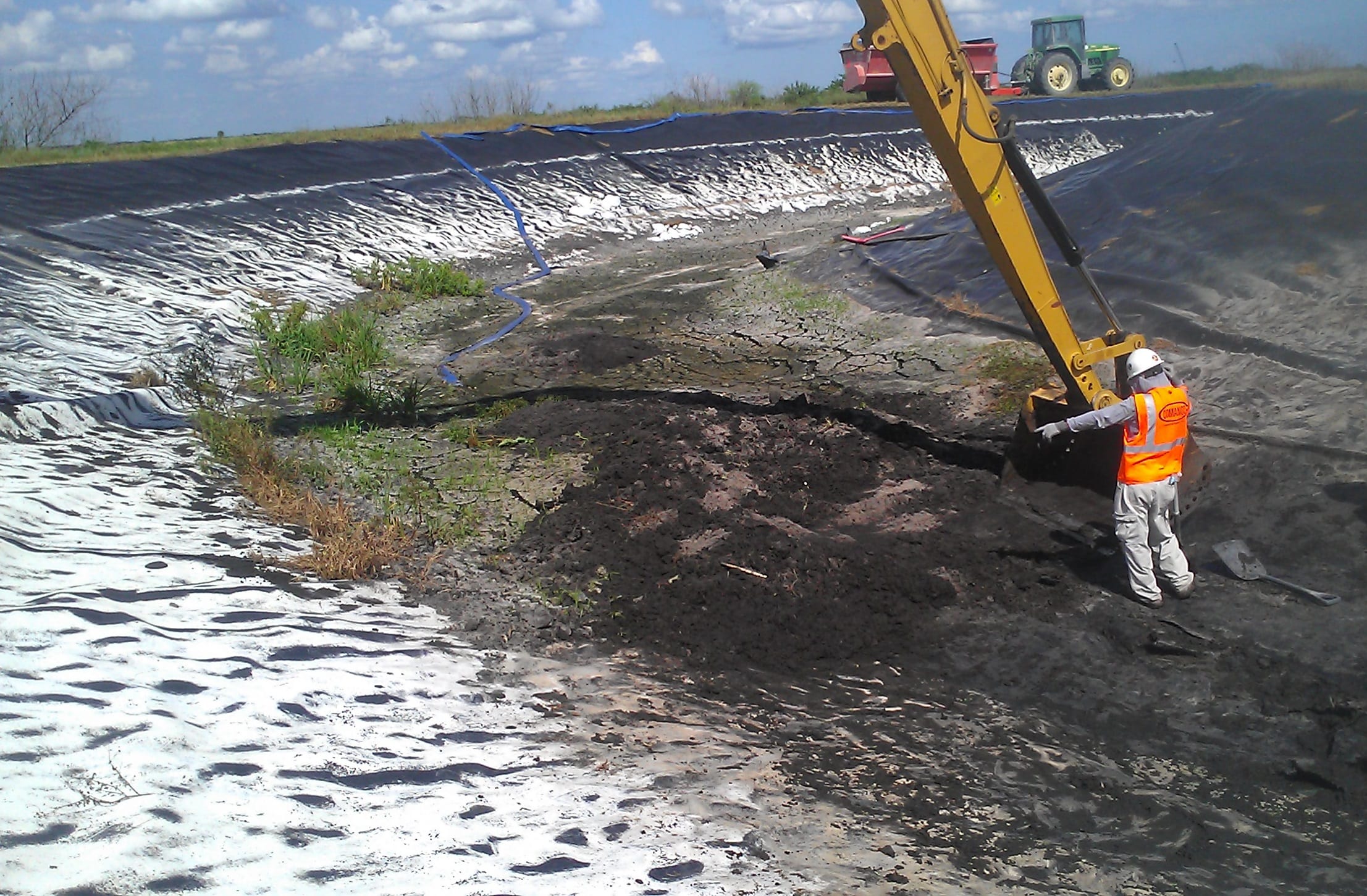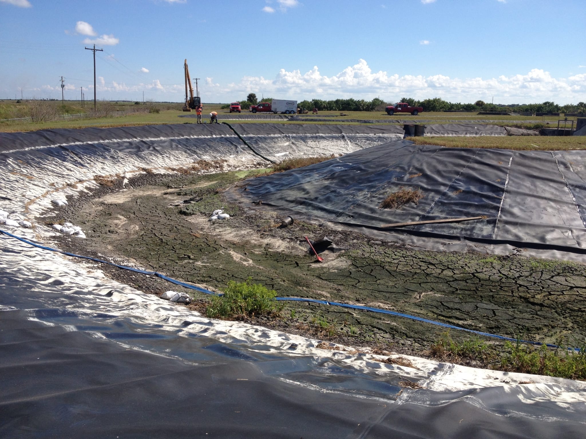 Last week, COMANCO completed the sediment removal and repair of a liner system at Southern Gardens Citrus, an orange juice processing plant in south Florida. COMANCO was tasked with removing the sediment that is a natural by-product of the juice processing operation, and repairing the existing lined ditches. The crew utilized a long stick excavator to remove the sediment, and then loaded it into a spreader, which in turn took the sediment away to spread back in the orange groves as fertilizer. COMANCO successfully cleaned out the ditches and repaired the liner to allow for a clean start to the main juicing season. The crew led by Superintendent Todd Kirkman and Project Manager Dan McRae completed the project safely, on schedule, and on budget!
