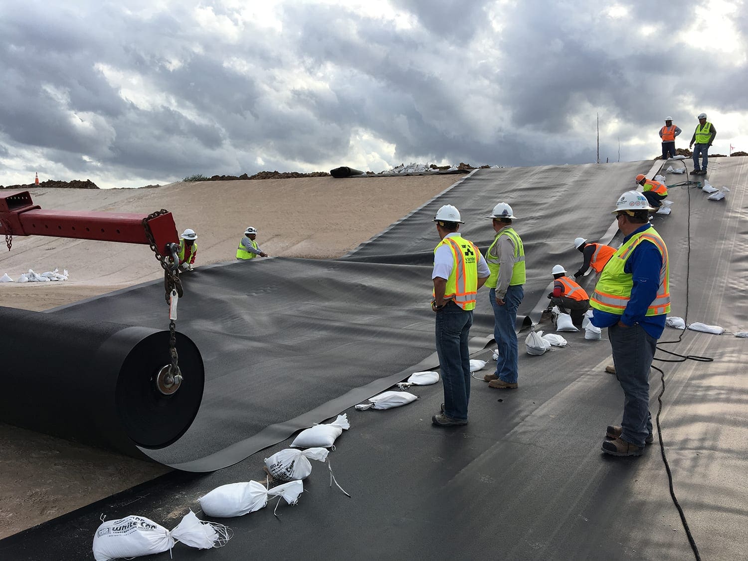 COMANCO Environmental continues deployment of a gyp stack expansion project in North Florida. Superintendents Arnulfo Martinez and Leroy Smith, oversee a 14 man liner crew has currently installed approximately over 898,000 square feet of 60mil double-sided HDPE geomembrane and 64,000 square feet of geocomposite vent strips. The crew is staying focused on maintaining a safe and efficient manner of work through the course of the project. Keep up the great work!