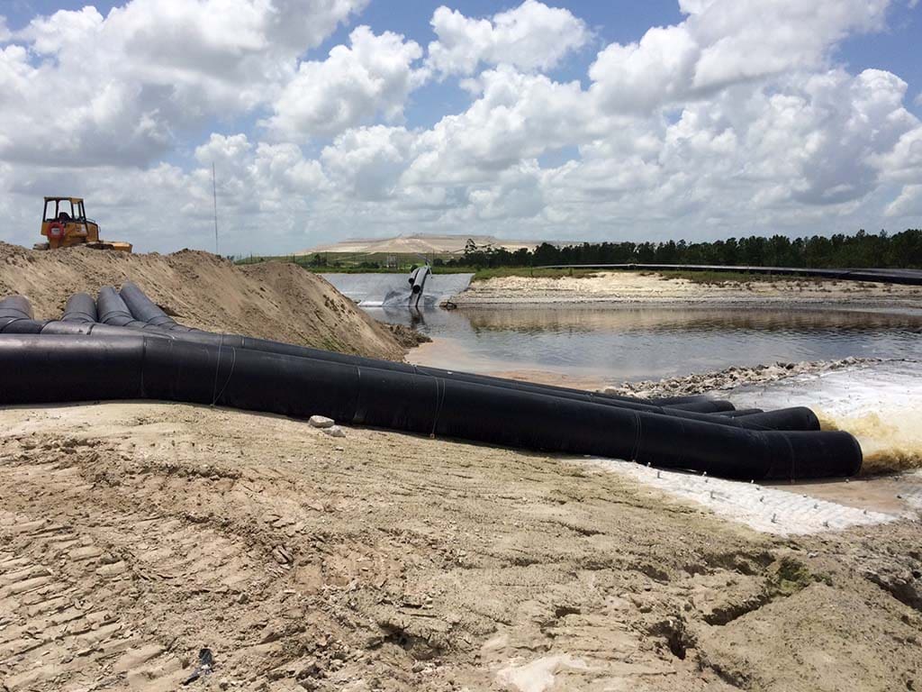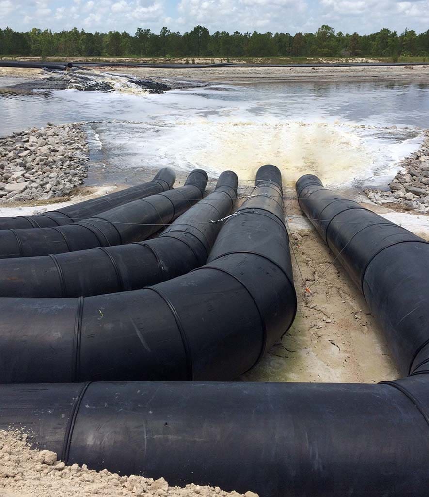 COMANCO Supervisor Jeremy Giles and his 6-man crew recently completed five tie-ins for 6,500 LF of 24” and 30” HDPE pipe. This supports the site work at a cooling pond for a chemical facility in West Florida. Following successful completion of the tie-ins, the crew placed soil over the pipes to prevent them from walking into the adjacent canal. This work included constructing a vehicle crossing over the pipes and a water diversion berm to protect the surrounding environment. The crew is now hauling and stockpiling gyp for the construction of two cofferdams in the canal.