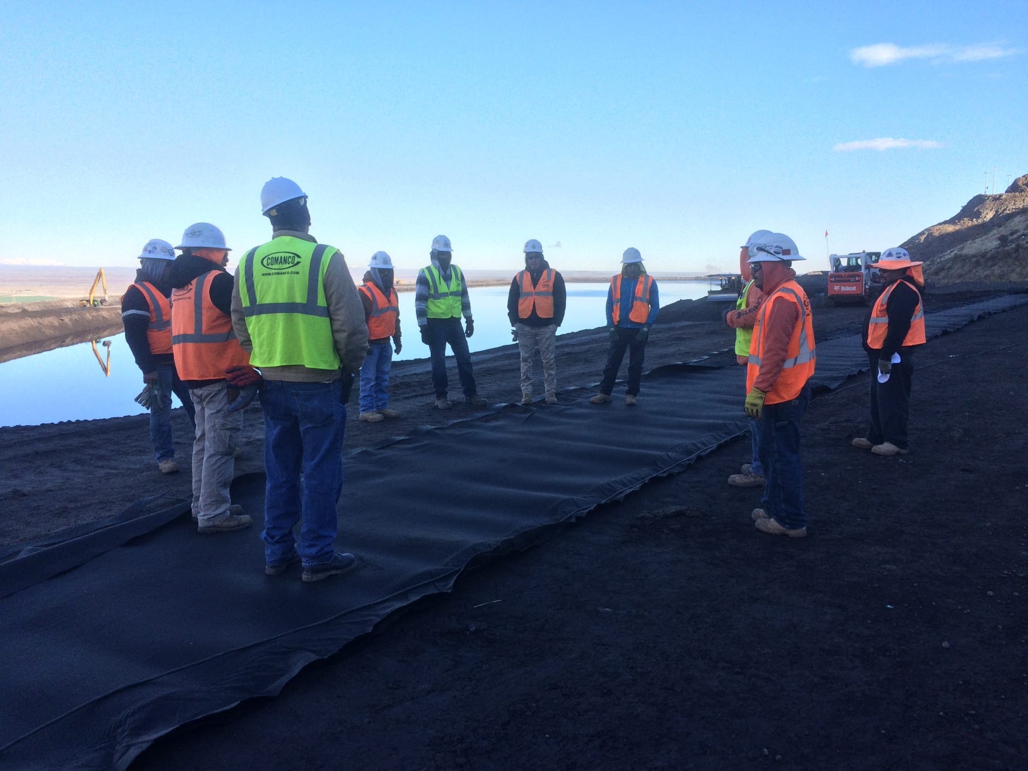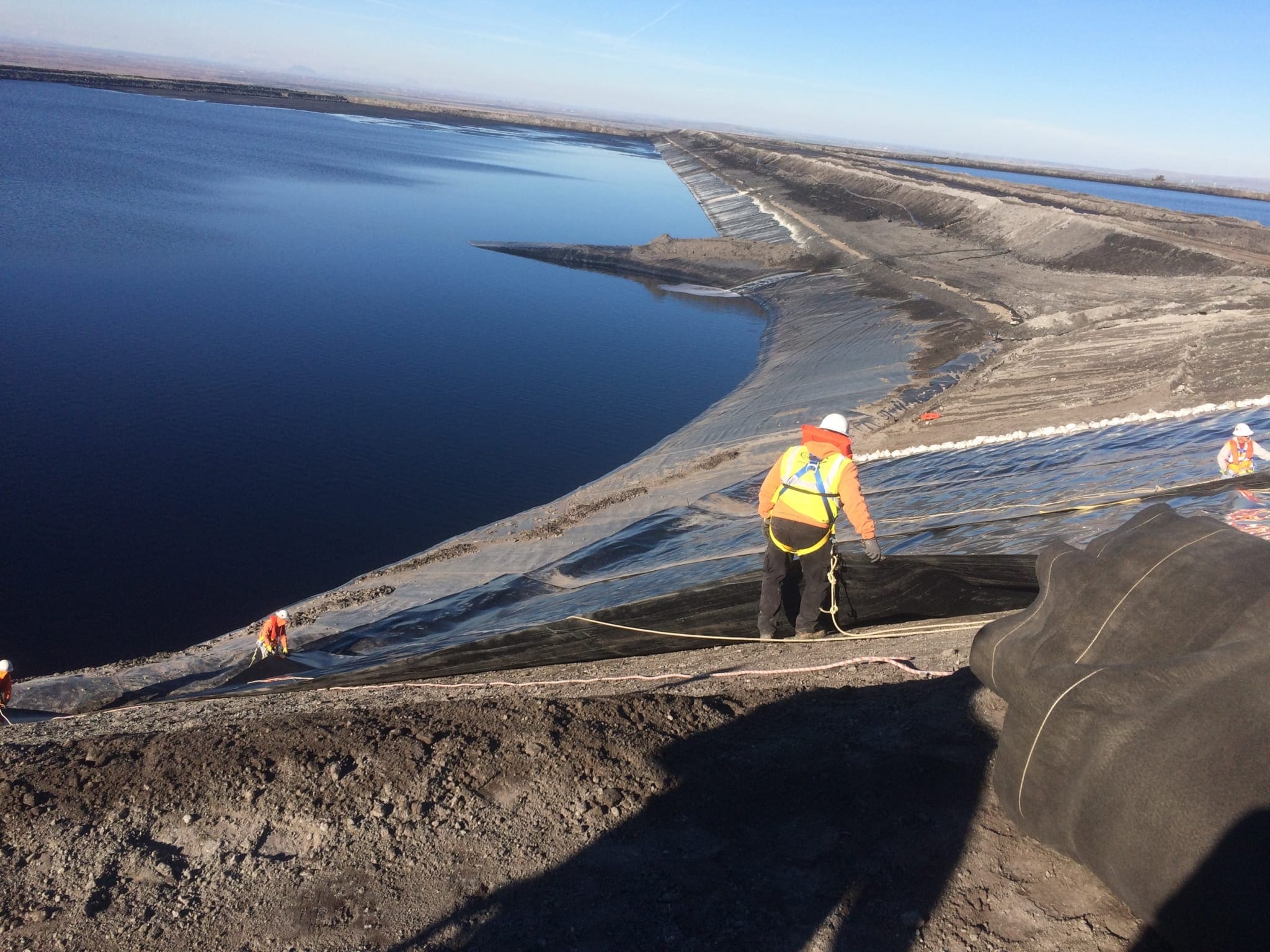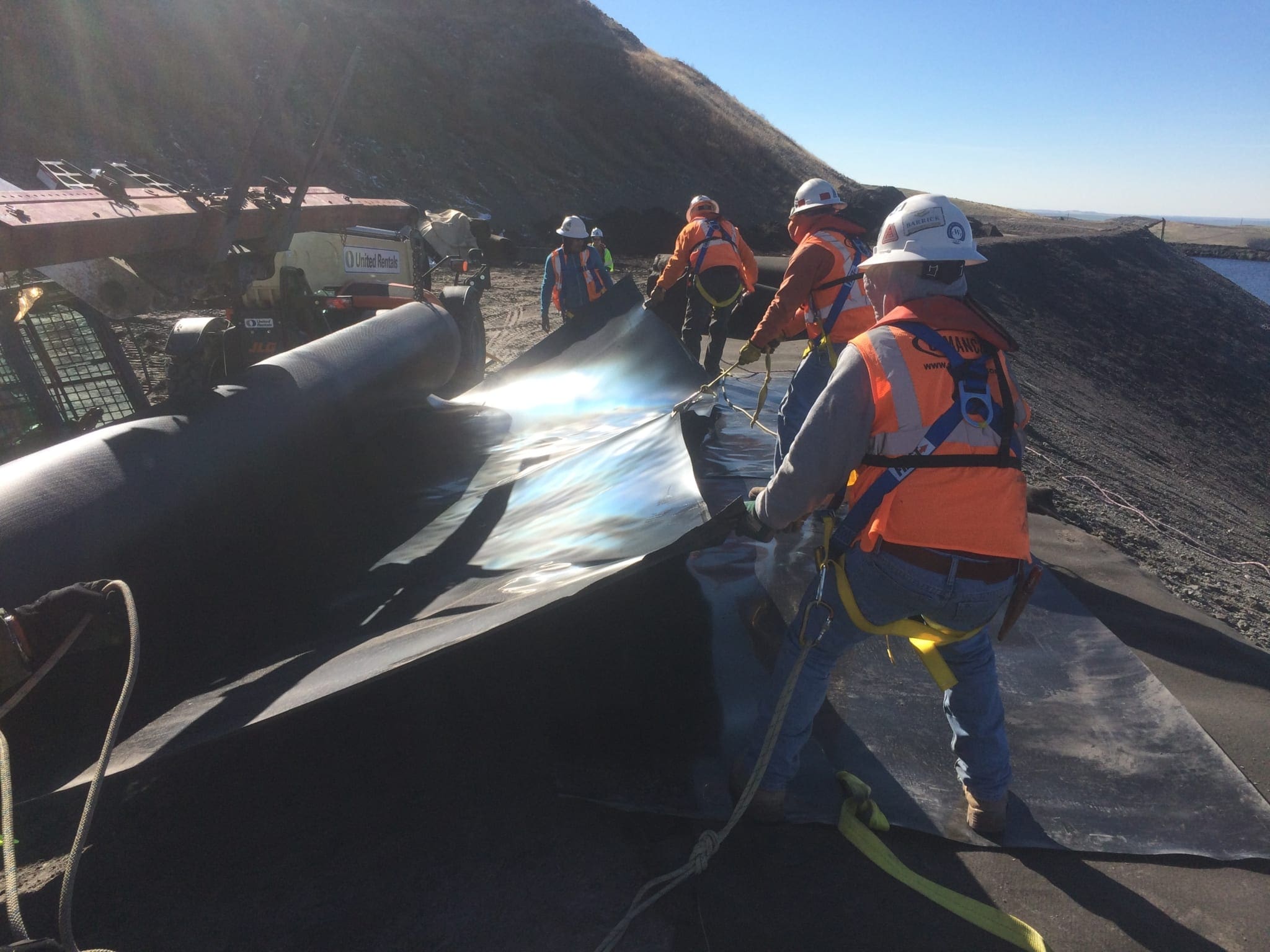 COMANCO Environmental has recently begun deployment of a gyp stack expansion project in Southeast Idaho. The project includes the installation of 182,000 SF of 60mil single-sided HDPE geomembrane, 68,000 SF of 60mil double-sided HDPE geomembrane, and 32,000 SF geocomposite vent strips. The liner is being deployed on a 1.7:1 slope and tying into three existing ponds.