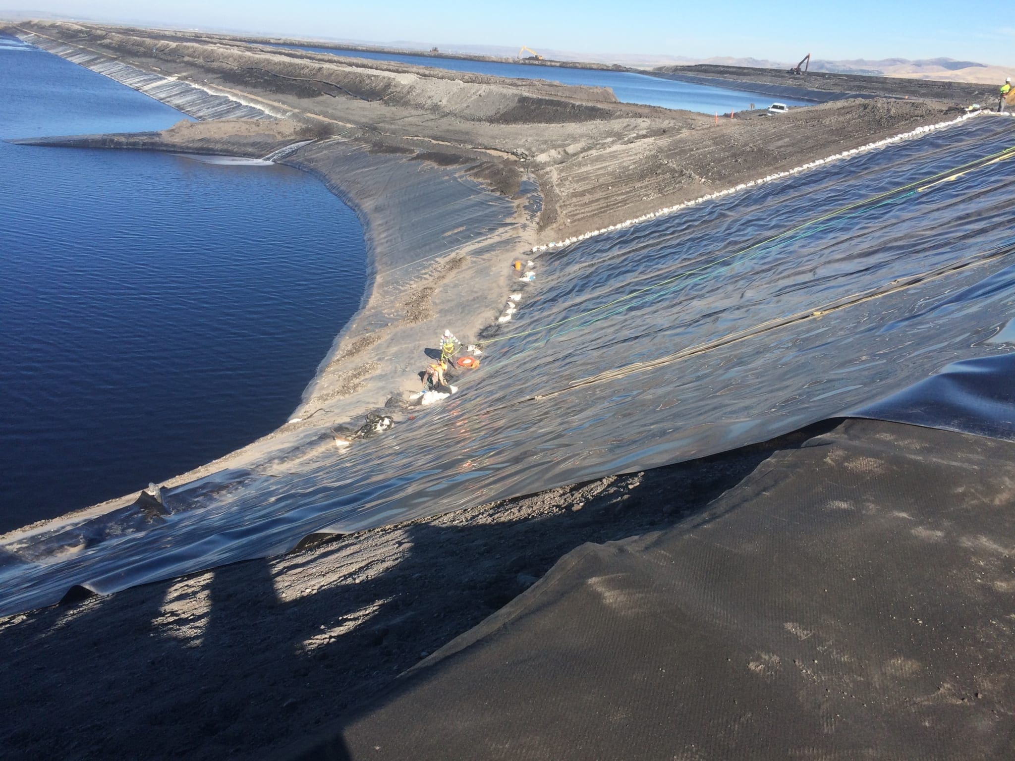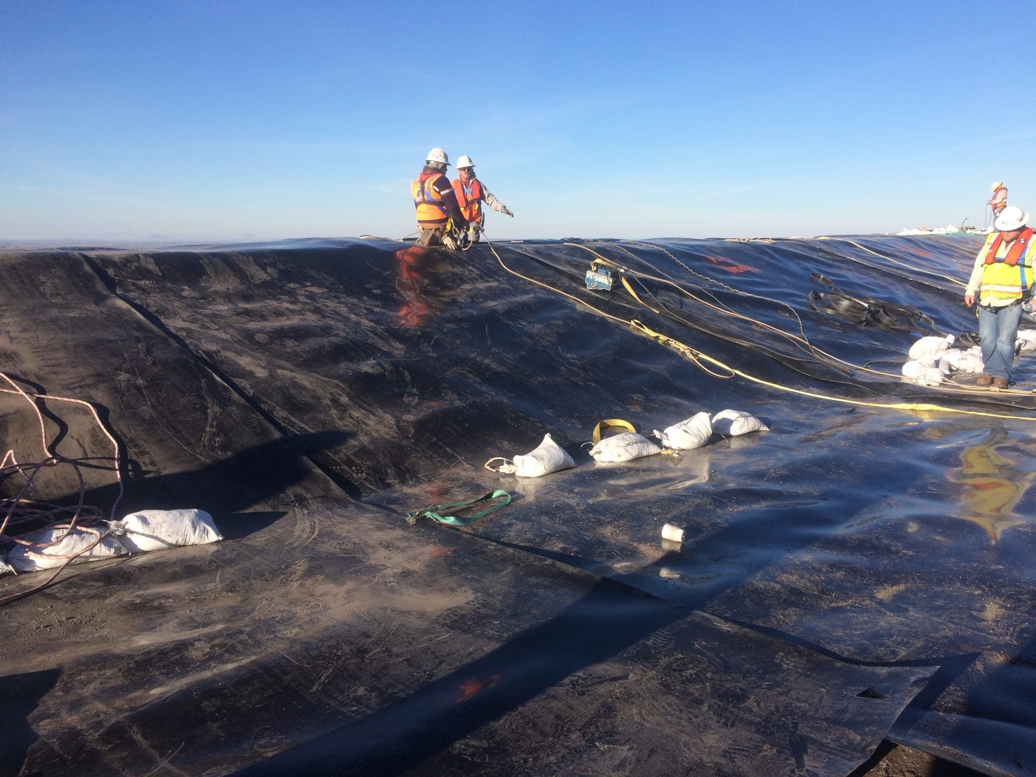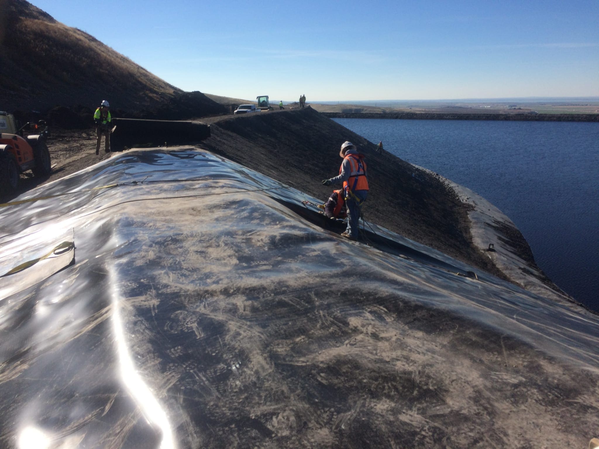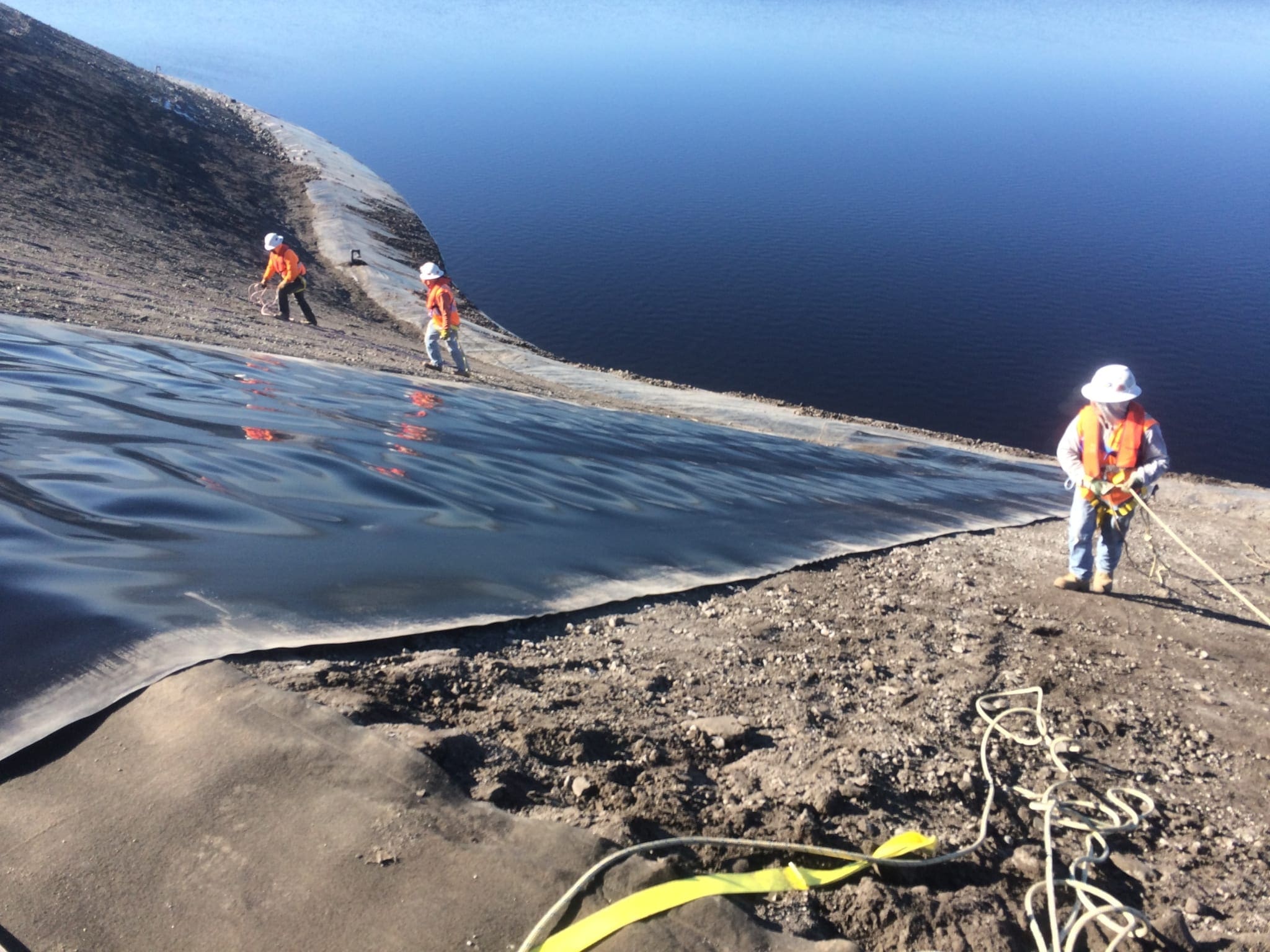 COMANCO Environmental has recently begun deployment of a gyp stack expansion project in Southeast Idaho. The project includes the installation of 182,000 SF of 60mil single-sided HDPE geomembrane, 68,000 SF of 60mil double-sided HDPE geomembrane, and 32,000 SF geocomposite vent strips. The liner is being deployed on a 1.7:1 slope and tying into three existing ponds.