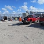 This is a very complicated deployment due to the steep slopes, mostly smooth liner, and tying into existing ponds that are nearly full. The crew is taking extensive measures to ensure the safety of each employee. Every employee is wearing a life jacket, safety harnesses, and tying off while on the slopes. Superintendent Arnulfo Martinez, Safety Officer Francisco Vargas, and the 10 man crew are off to a good start while maintaining a safe work environment. Keep up the great work and we look forward to seeing the progress on this project as deployment continues!