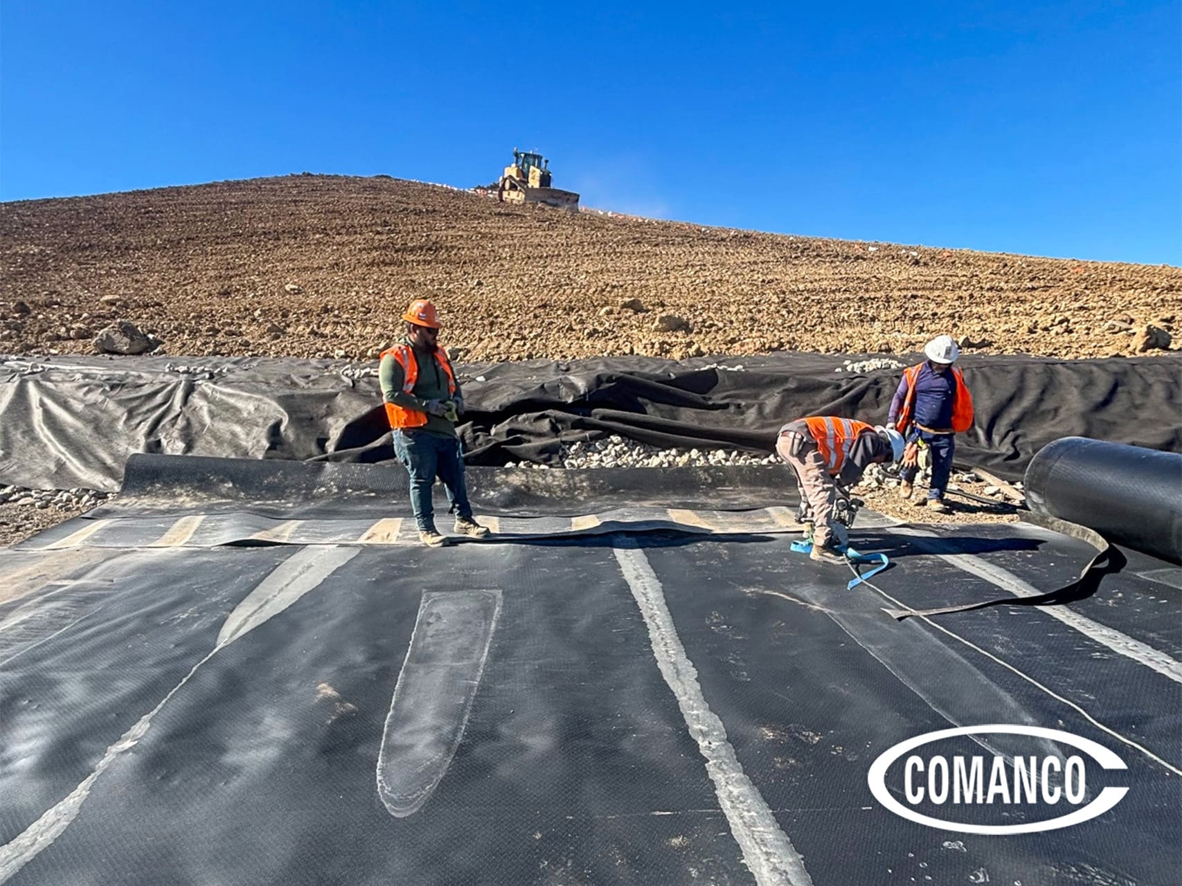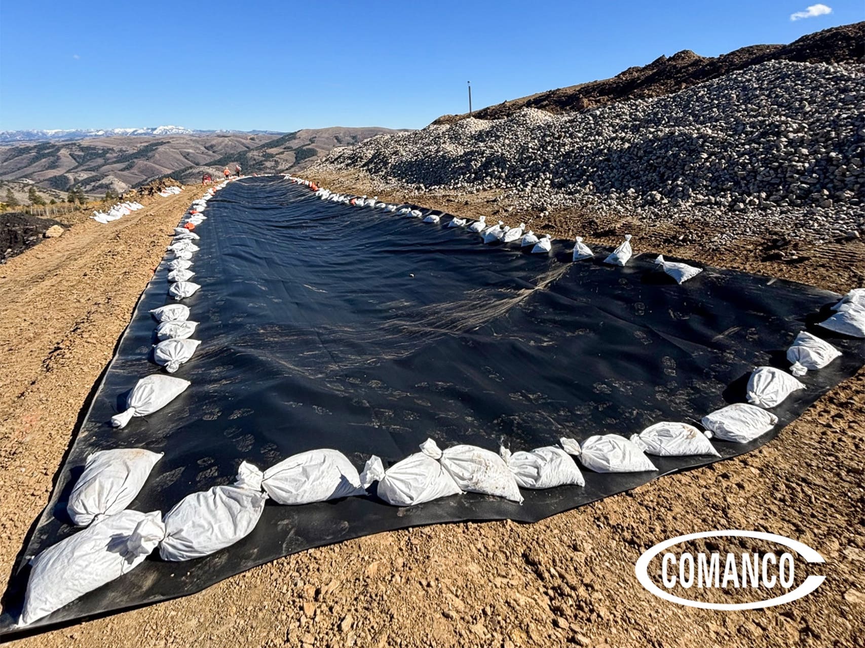 The crew installed Solmax 60 Mil DS Textured liner as part of a day-rate installation. The liner serves a vital role in protecting the surrounding environment by preventing potential contamination from mining operations. This installation reflects COMANCO’s ongoing commitment to environmental stewardship and sustainable practices.