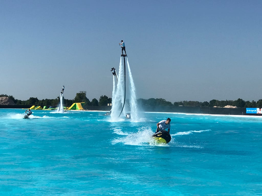 The grand opening featured a tropical-themed event with water ski shows and fly-boarding performances throughout the day and even mermaids in the lagoon. The attendees also enjoyed live music and food trucks.