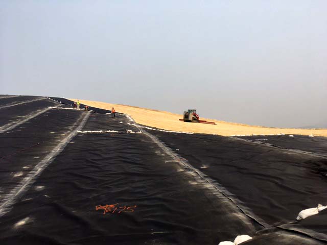 COMANCO Supervisor Pablo Medina and his 10-man crew are nearing the completion of a heap leach pad cap in North Central Idaho. The crew is currently installing 800,000sf of 60mil LLDPE Super GripNet liner. This product features underside spikes for adherence to steep slopes and are simple and economical to install which is required for this project. Keep up the great work guys!