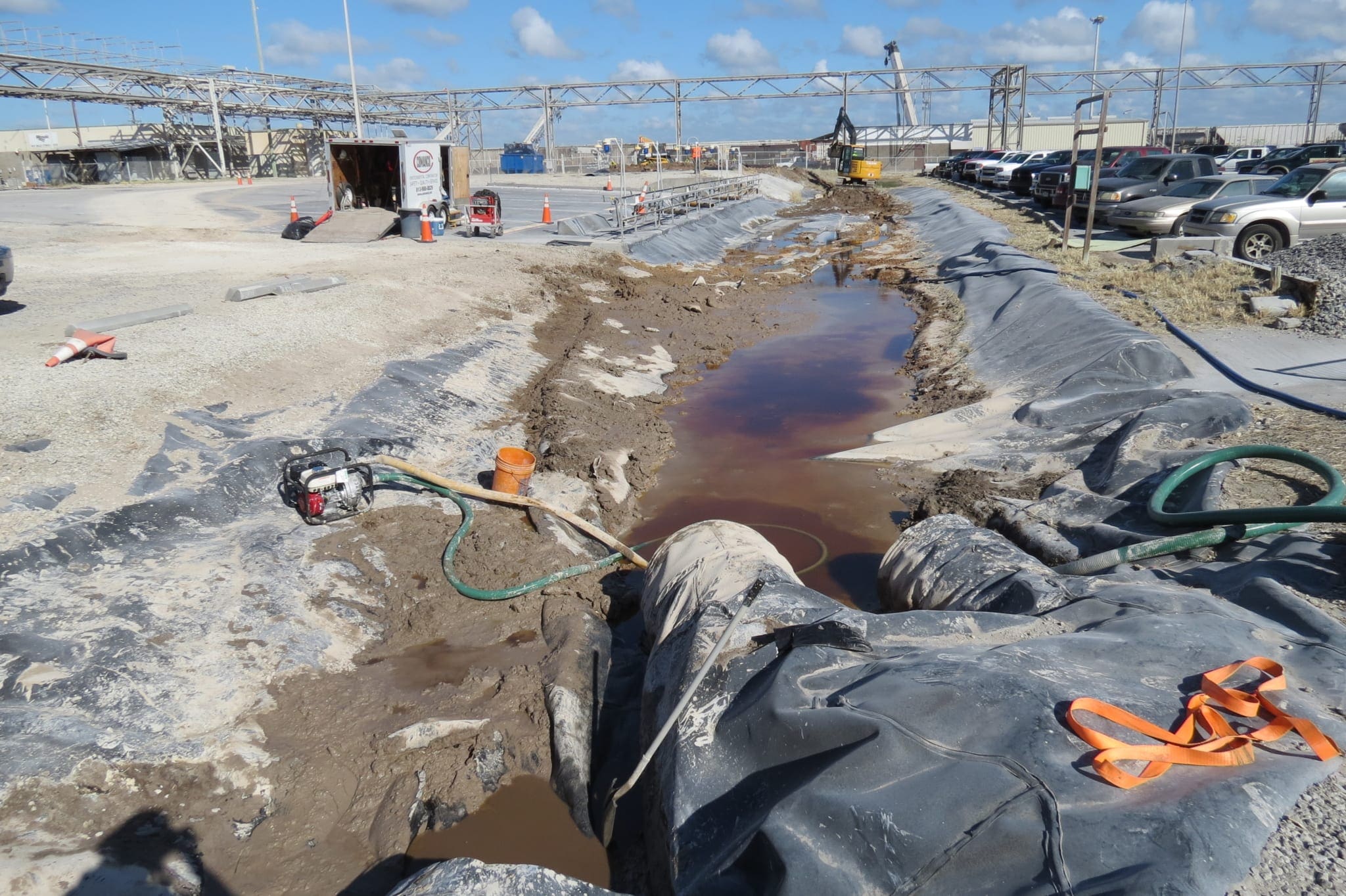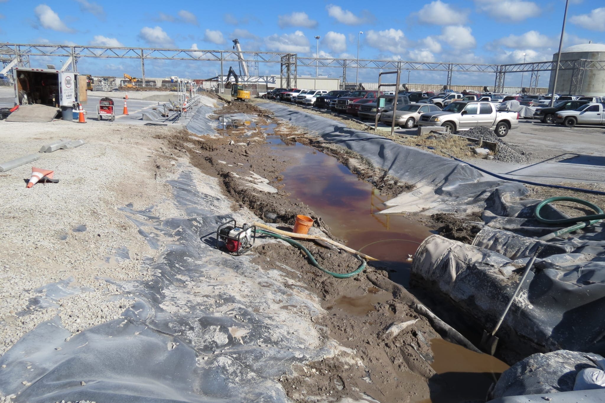 A COMANCO crew began working on cleaning a ditch liner near a truck unloading pad at a chemical plant in Central Florida this past week. The crew will remove the liner in the ditch after the sediment is removed and will grade the area. New liner will be installed in the ditch, and plant activities will resume in this area afterwards. The crew is being led by Charlie Ingle and Gerardo Ruiz.