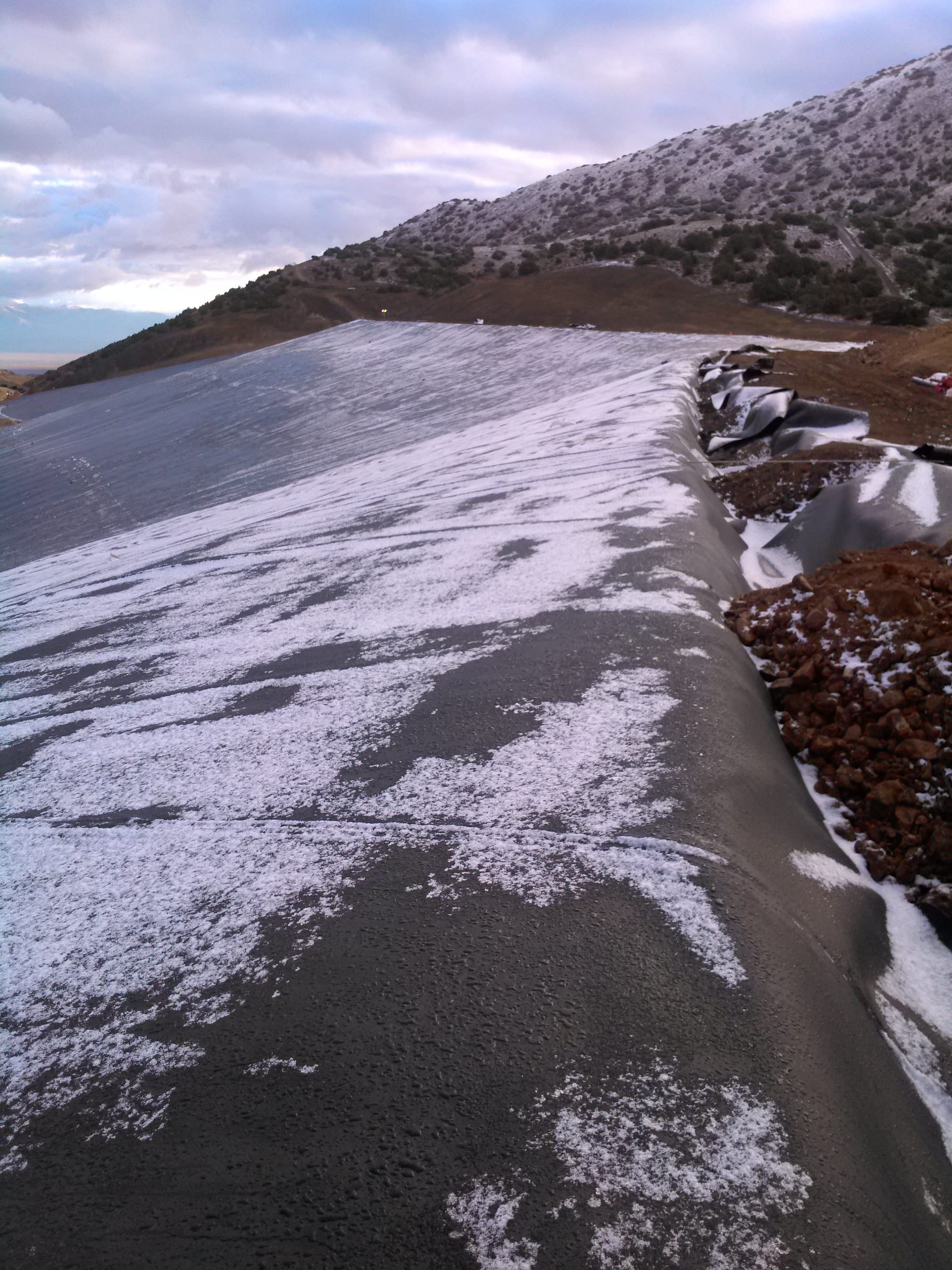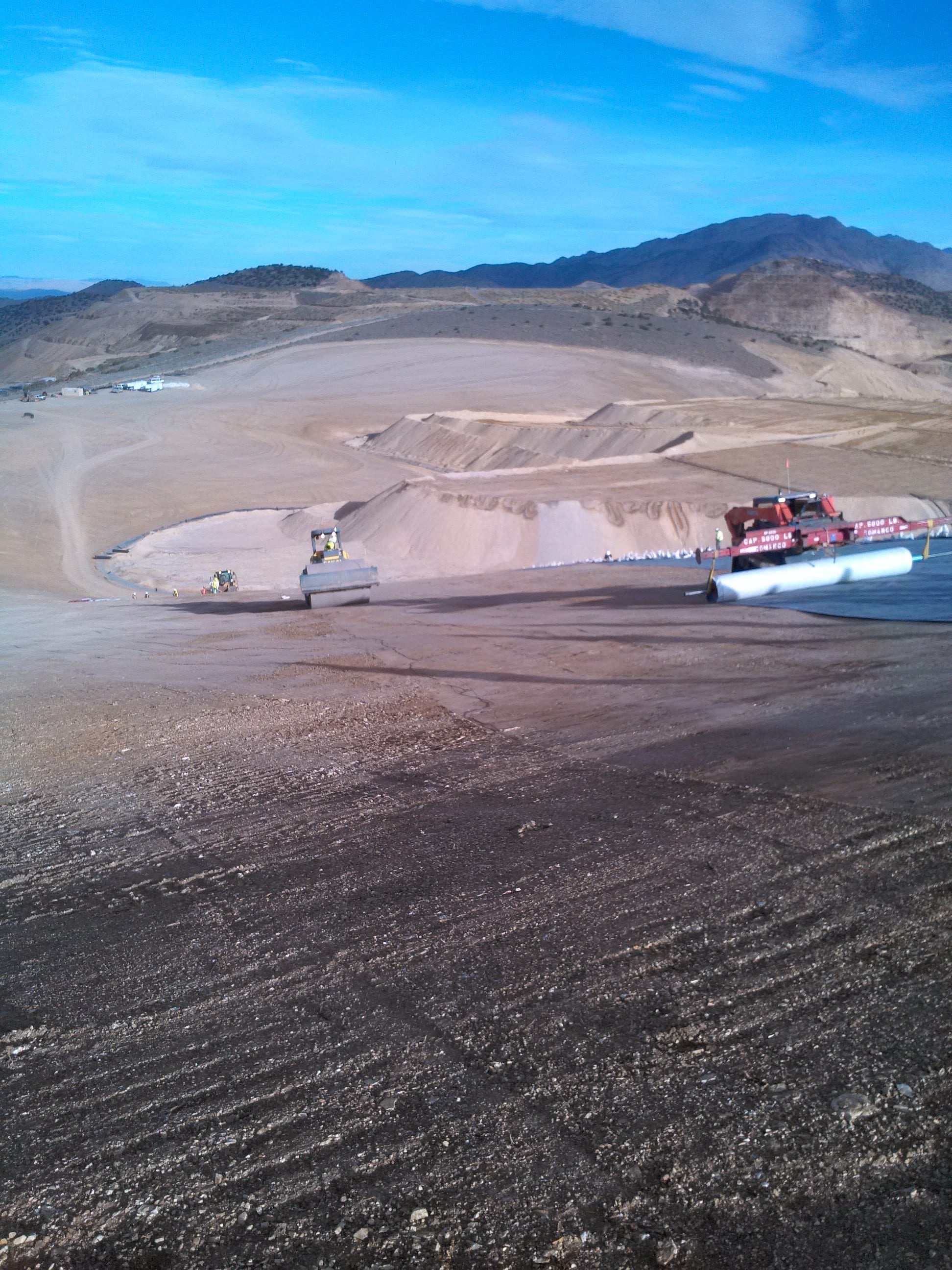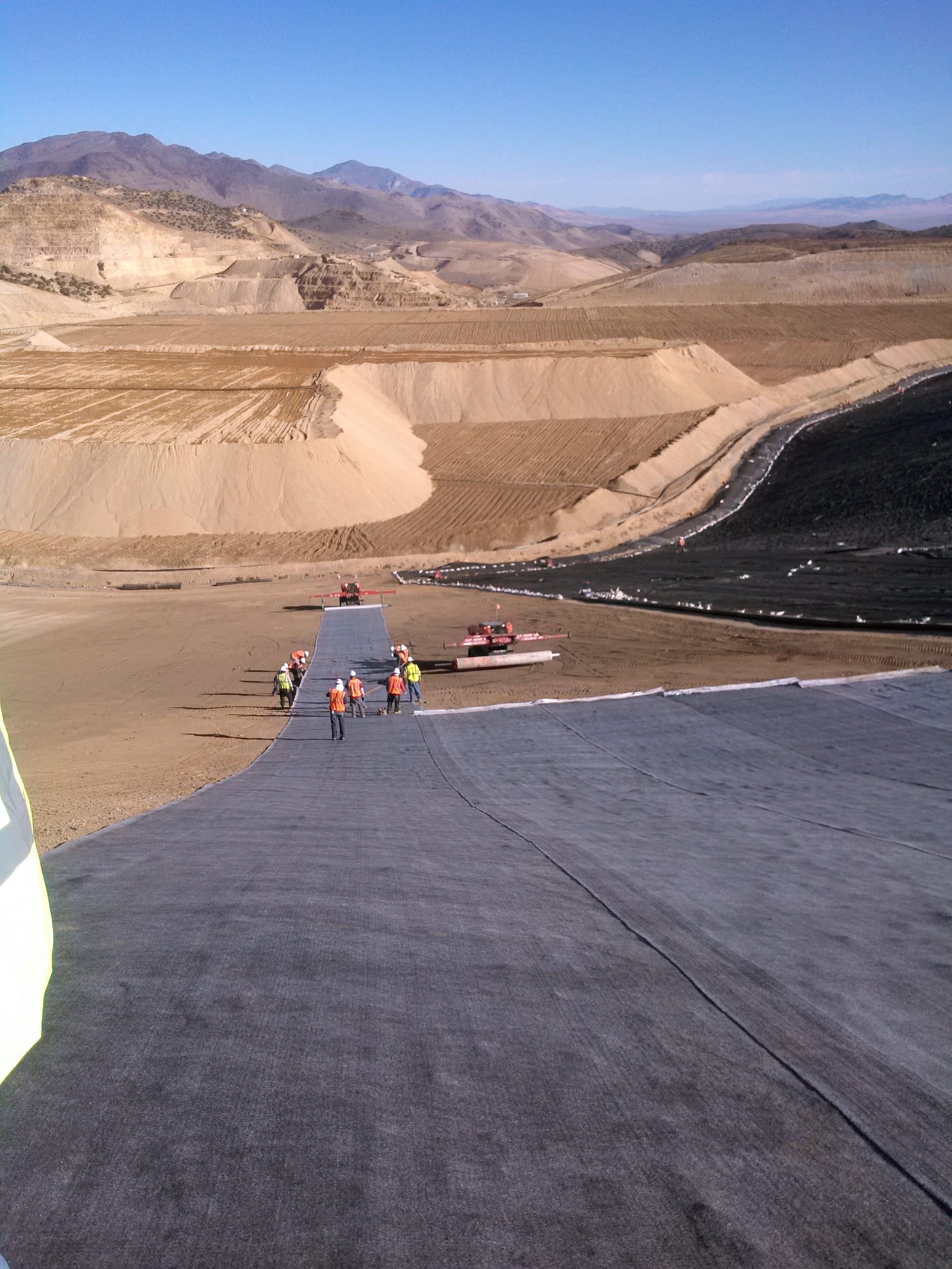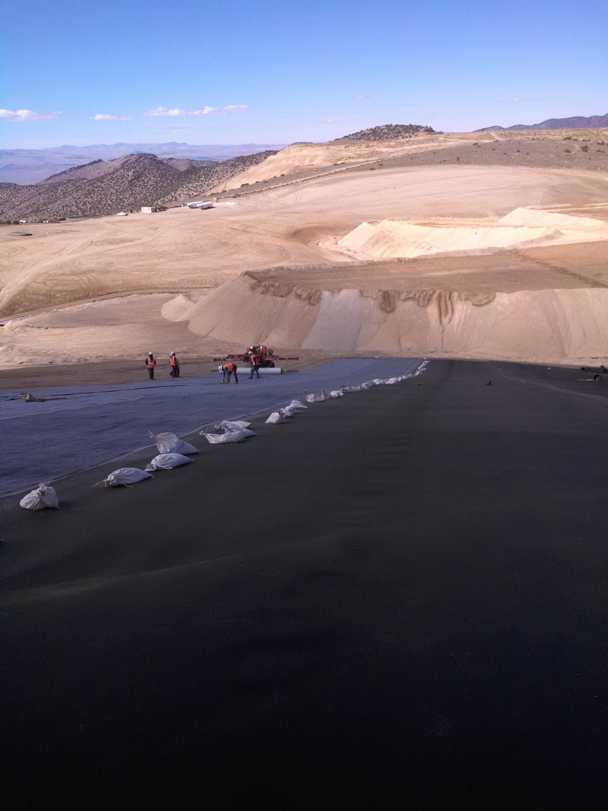 The heap leach pad expansion project near Lovelock, Nevada has deployed over 1,500,000 square feet of 80-mil double sided HDPE geomembrane and reinforced geosynthetic clay liner (GCL). The 28 man crew led by superintendent Martin Calderon has encountered strong winds, cold temperatures, and even snow on this project! The COMANCO crew has had no incidents and continues to work hard to complete the job.