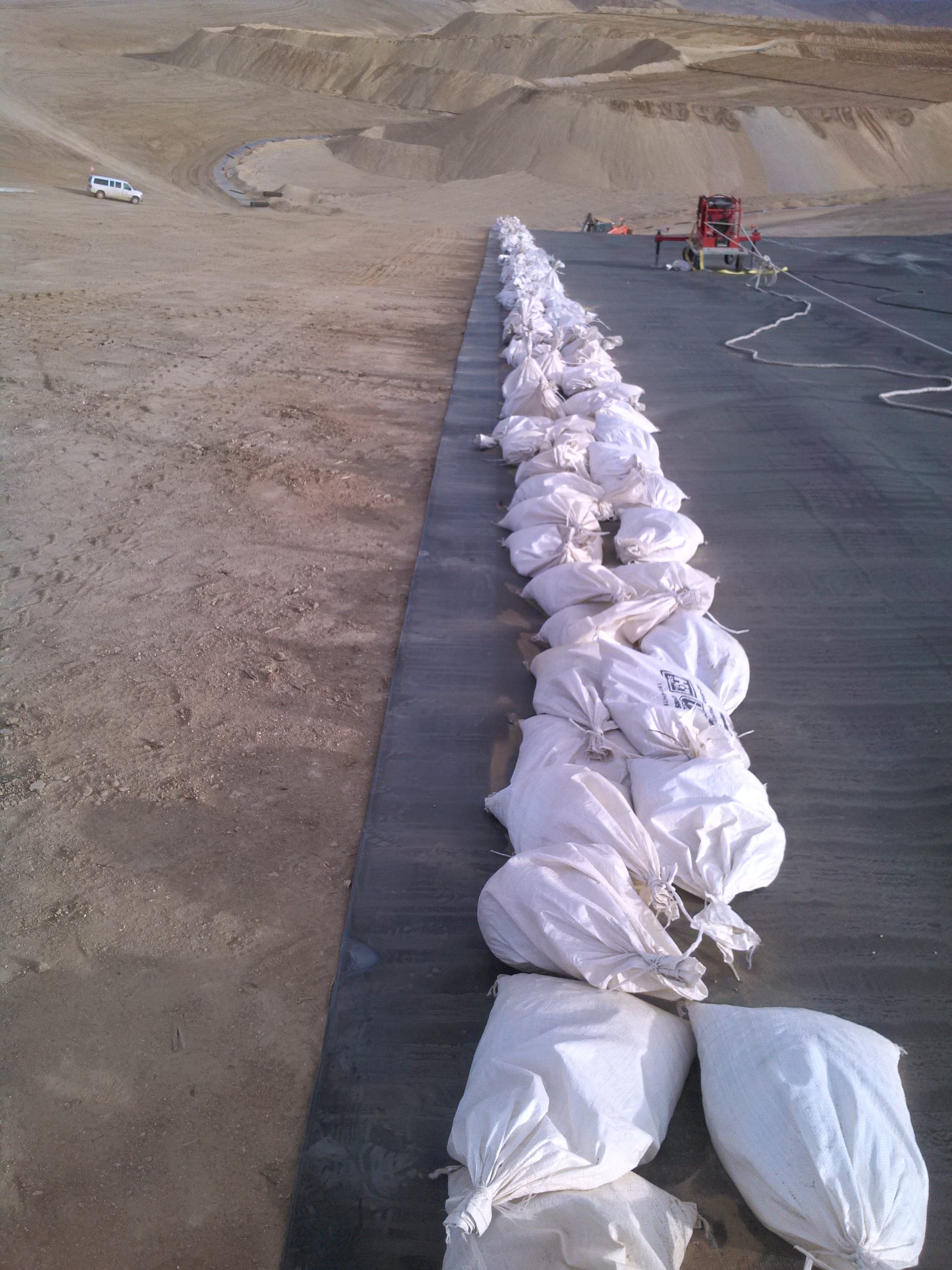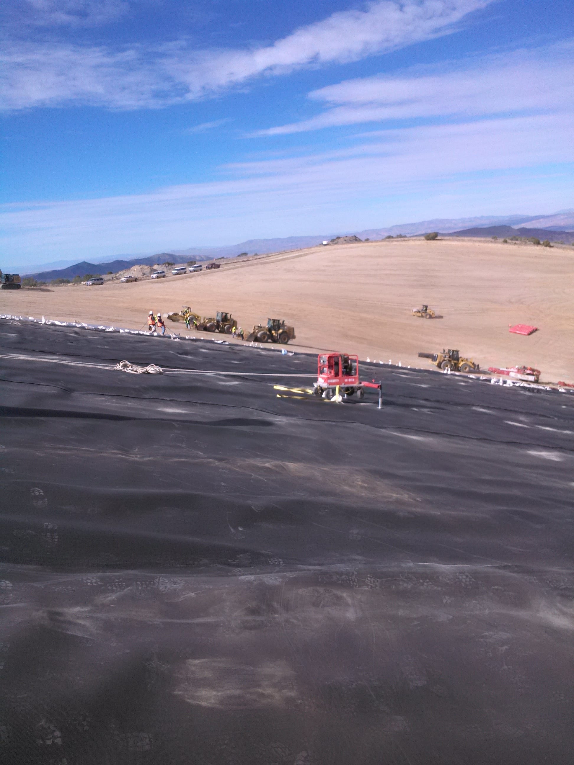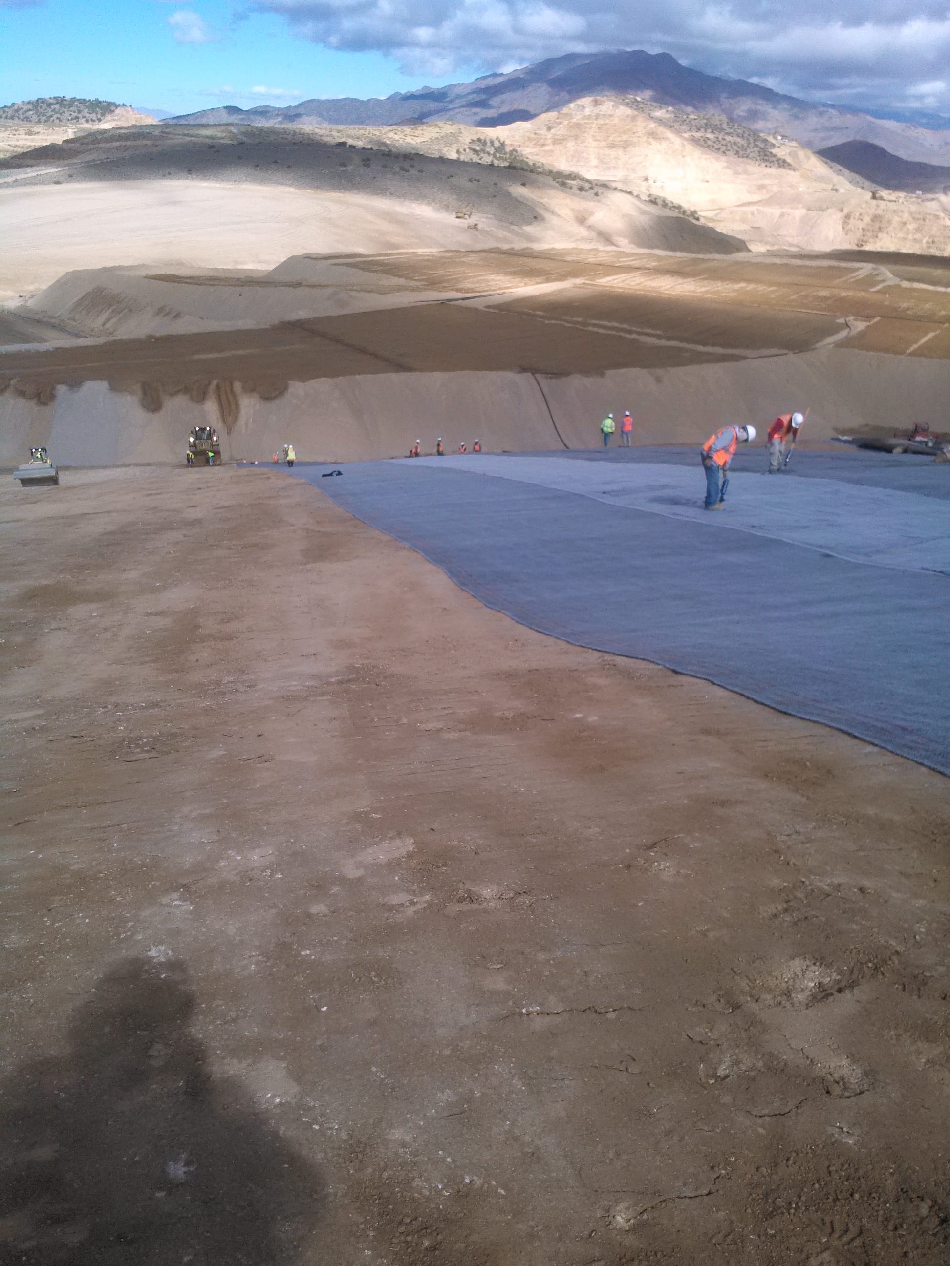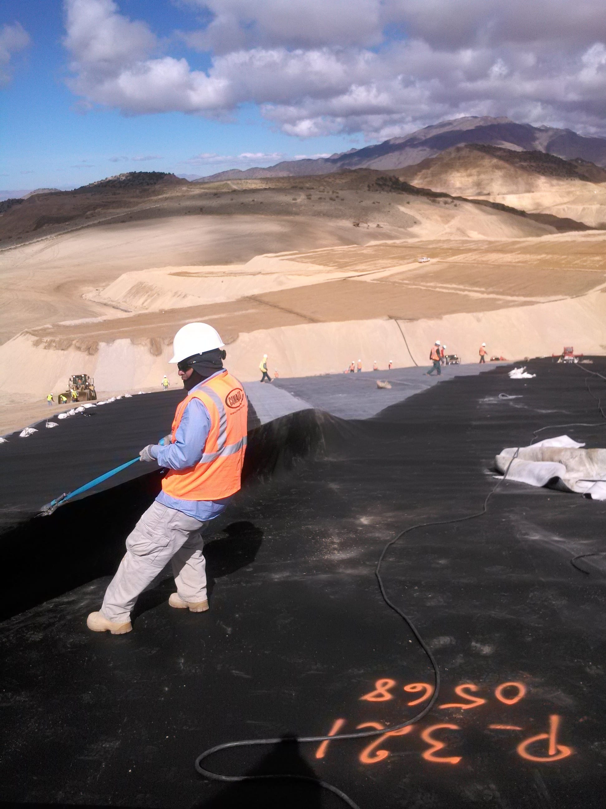 The heap leach pad expansion project near Lovelock, Nevada has deployed over 1,500,000 square feet of 80-mil double sided HDPE geomembrane and reinforced geosynthetic clay liner (GCL). The 28 man crew led by superintendent Martin Calderon has encountered strong winds, cold temperatures, and even snow on this project! The COMANCO crew has had no incidents and continues to work hard to complete the job.
