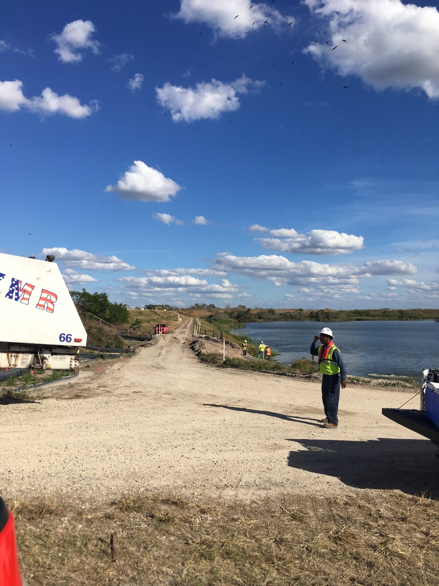 Just this past week COMANCO was able to reach a milestone on a spillway improvement project in Central Florida. Superintendent Scott Hall and the crew successfully completed the abandonment of a 48-inch CMP spillway. The crew utilized a concrete pump to fill the 178-foot pipe run and overflow weir with 108cy of a flowable fill grout mix. Due to limited access to the work area, the task was carefully planned to identify all possible safety hazards, and safety spotters were strategically placed when concrete trucks were being staged. As a result of the planning, this phase was completed in the required one day pour window with no incidents. Check back as this project begins to pick up steam!