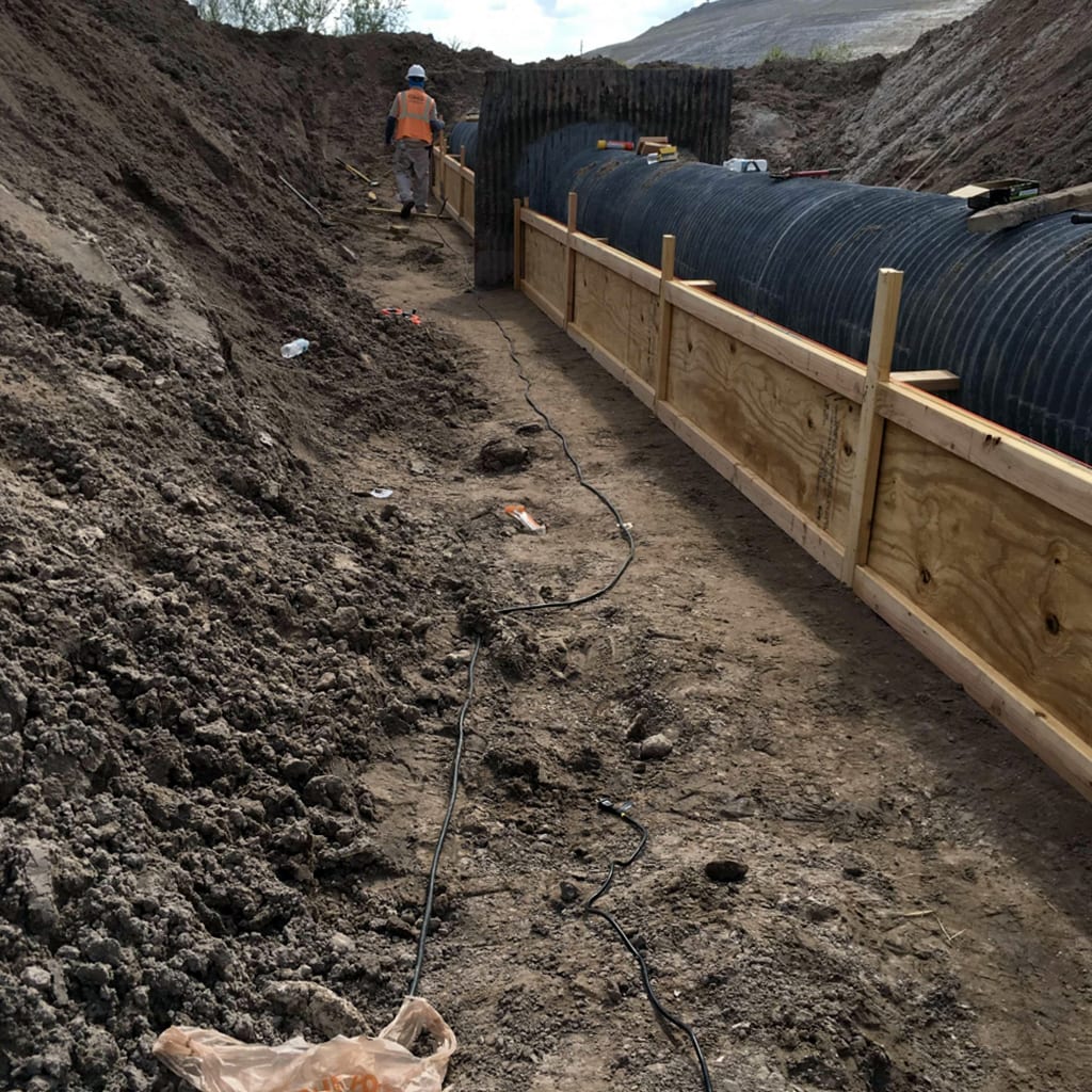 Over the past few weeks, COMANCO has been hard at work on a spillway modification project at a Central Florida chemical facility. Superintendent Scott Hall along with Jeremy Giles have been prepping for pouring a concrete saddle around an existing 36-inch CMP spillway. The crew first had to refurbish the pipe by coating it with a rust inhibitor and zinc-enriched paint. The next steps included cutting and setting forms, along with backfilling and compacting around the saddle for stability. Once the saddle pour is complete, the crew can focus on building the pond dike back to grade. Check back later this week to see how the saddle turns out!