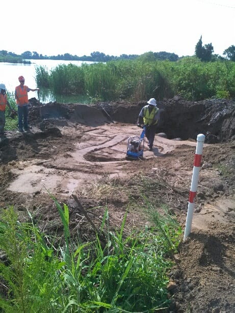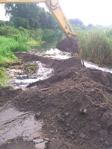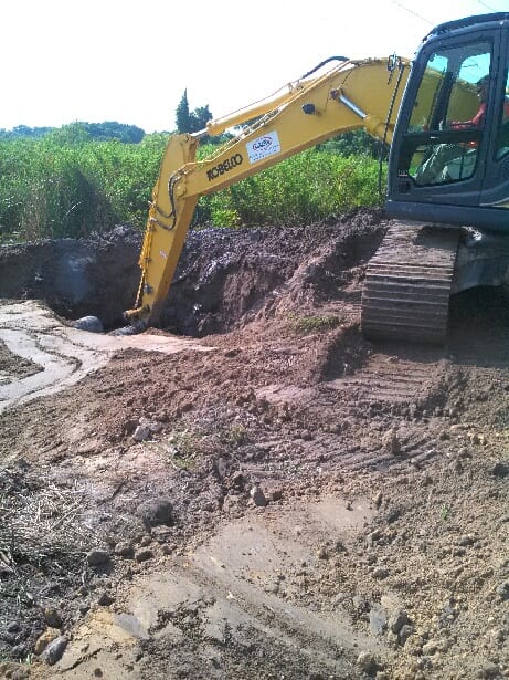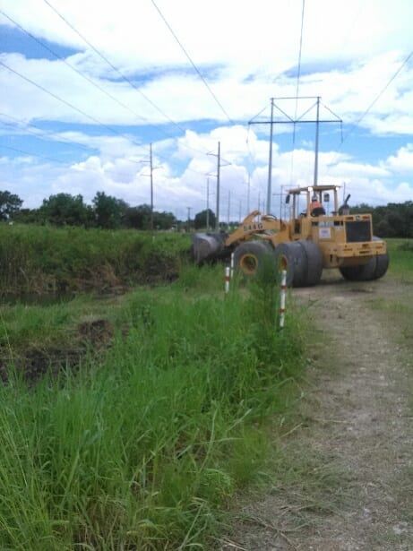 A COMANCO crew has just finished up some maintenance work on a ditch at a closed chemical plant in Florida. Led by Project Superintendent Charlie Ingle, the crew replaced some 18″ HDPE pipes at the end of the ditch leading into a pond and backfilled and compacted the area. The flow of water is now steady, and the water levels are equalized. The crew had to be cautious of wildlife in the swampy conditions, but there were no incidents associated with this work.