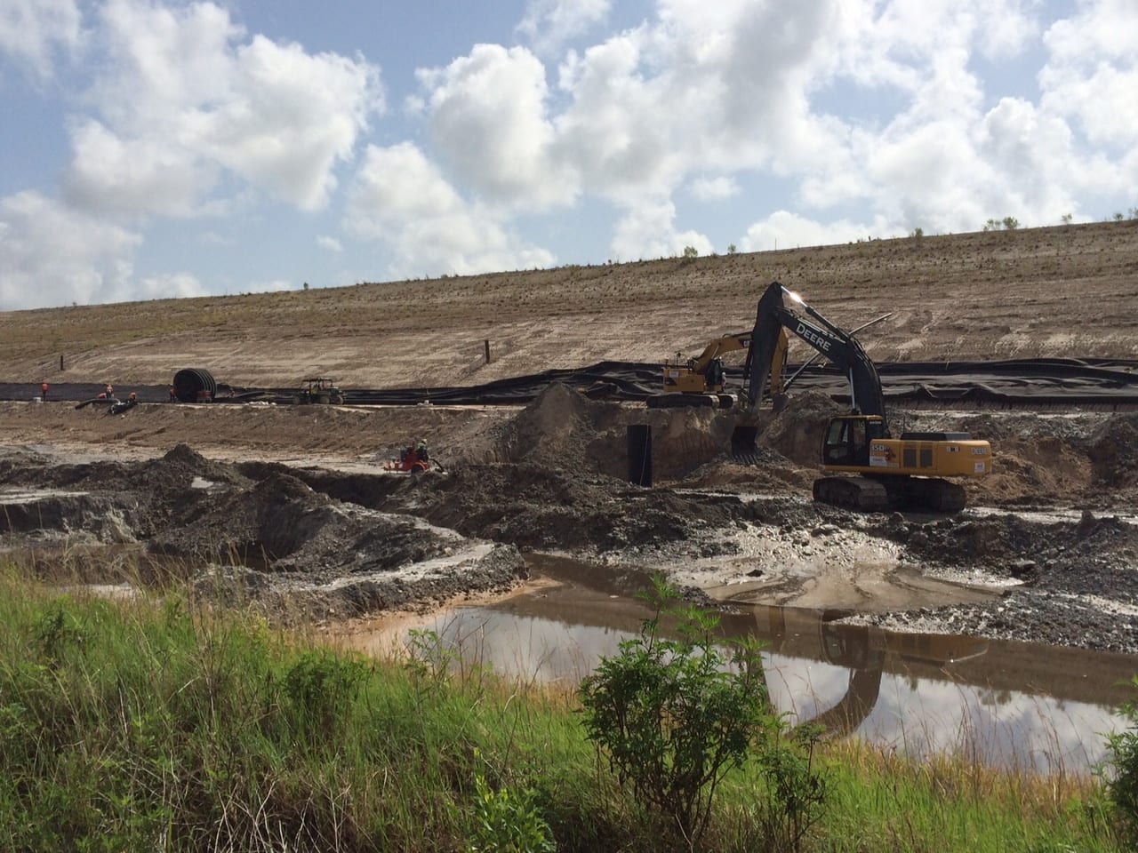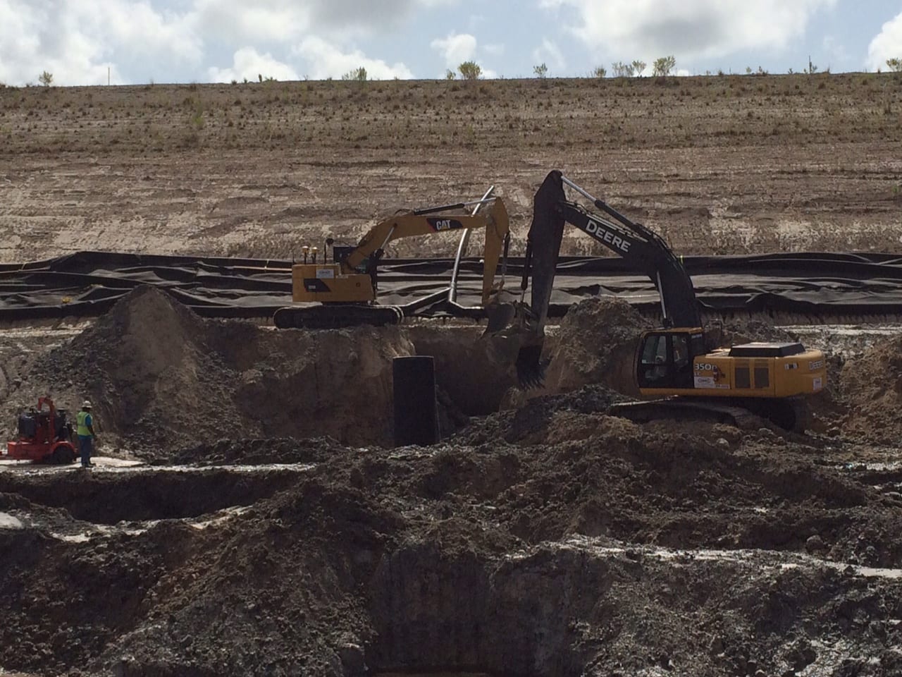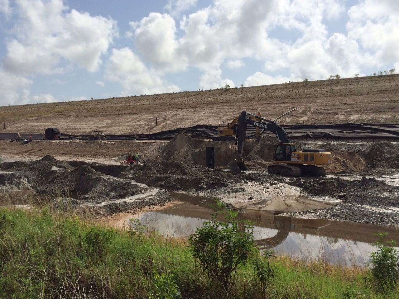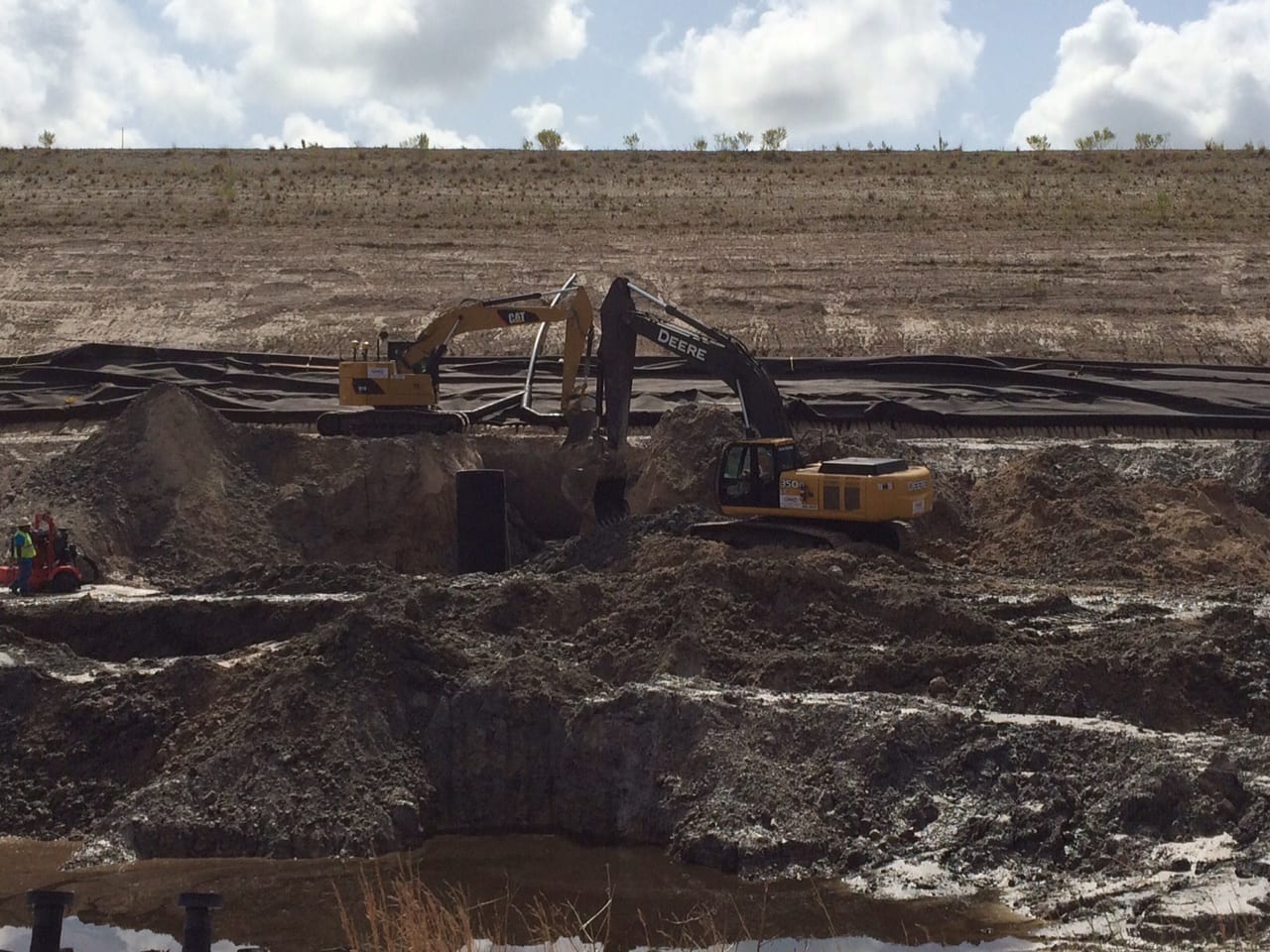 A COMANCO crew is rounding the corner of a gyp stack closure project at a chemical plant in Florida. The 24″ header installation is about halfway complete (5,600 LF installed), and the 12″ corrugated lower drain system is nearing 3,000 LF installed. There are also nine 48″ manholes installed along the south, west, and north sides of the gyp stack. Work is expected to be complete by the end of the year.
