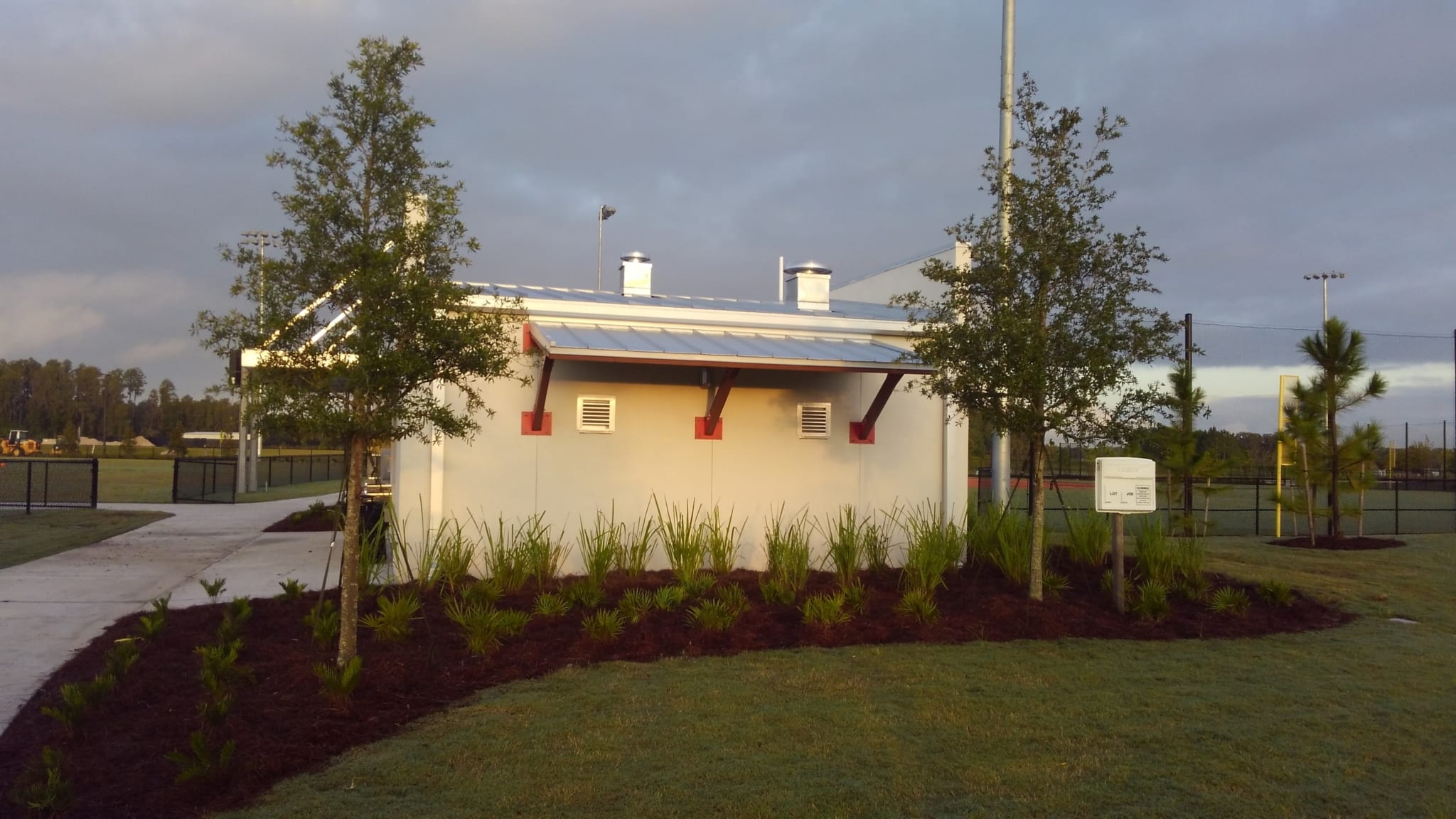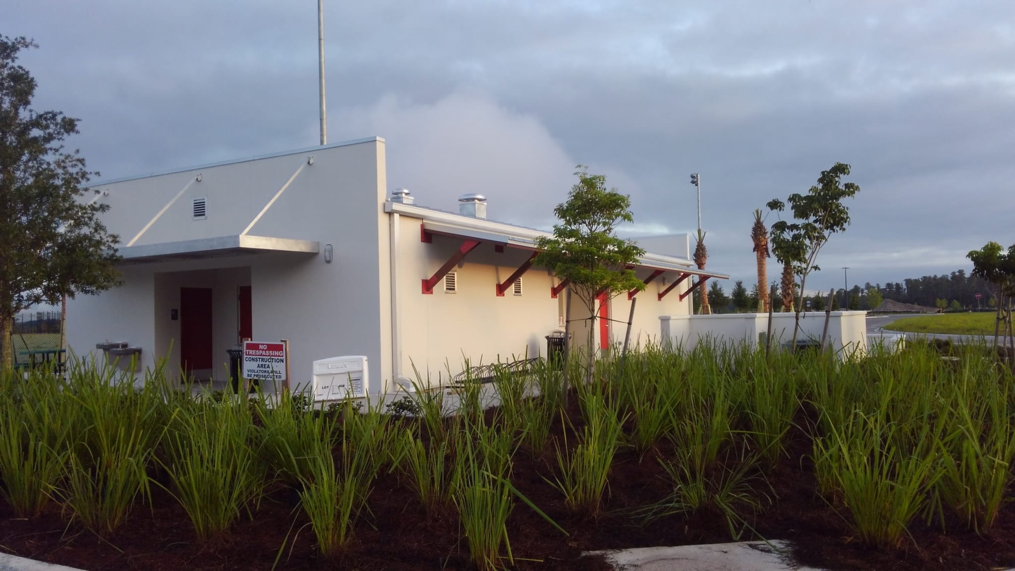 COMANCO has been busy adding the finishing touches – hardscaping and landscaping around the Concession and Restroom Buildings at the New Starkey Ranch District Park. The concrete patio, sidewalks, seat wall, and grill wall have been poured and painted around the new park in the past couple weeks. In the last week, the landscaping has been installed – including sabal palms in each of the planters around the Concession Building. Next up, the picnic tables will be set in place to complete the finishing touches. The new District Park will be open for business before you know it!