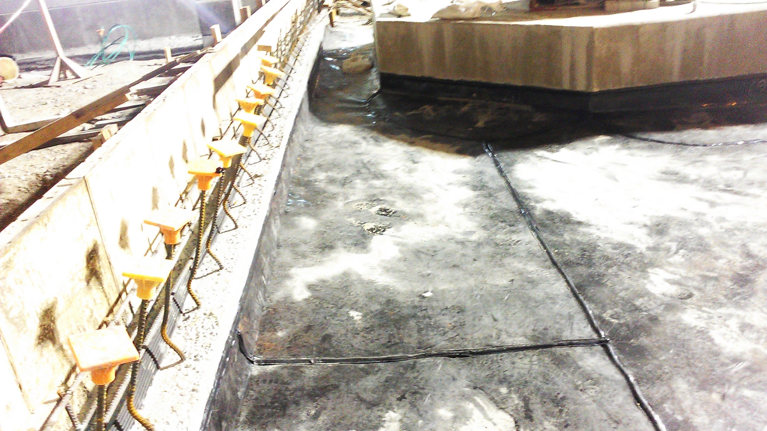 Once the liner is in place, 3,000 SF of 12-250 single-sided geocomposite is then installed. Also included within the scope of this project is the installation of three 24″ pipe boots. Due to other activities going on during the day, COMANCO’s work is being done on night shift. Superintendent Tony Sanchez and the six man crew adjusted quickly and are doing a fantastic job of working safely and efficiently.