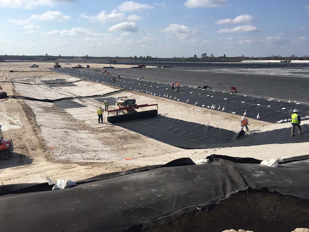 Site Superintendent Arnulfo Martinez supervises the drain installation while continuing liner deployment on the other side of the expansion. To date, COMANCO has now installed nearly 4.3 million square feet of 60-mil textured HDPE liner.