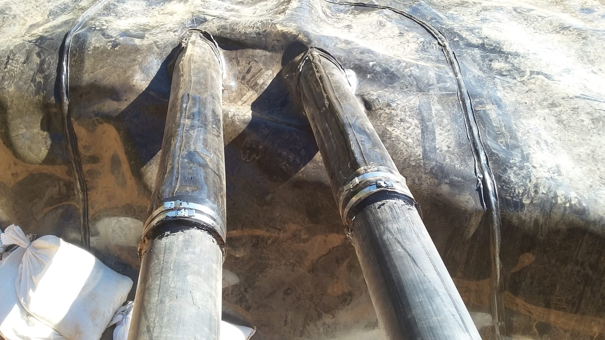 A 9-man COMANCO crew led by Superintendent, Carlos Garcia, began deployment and installation of two sediment ponds in California. The two sediment ponds consist of secondary and primary layers of 60mil Smooth HDPE Liner with a 200mil Geonet drainage layer. The crew has completed the installation of each layer for both sediment ponds which includes 155,248 SF of 60mil Smooth HDPE Liner and 77,640 SF of 200mil Geonet. A total of five pipe boots and 55 LF of batten bar have also been installed for the two sediment ponds.