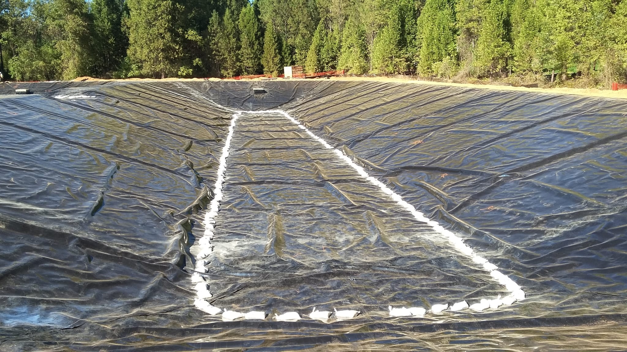 The crew is currently starting the installation of a single layer mixture of 60mil HDPE smooth and textured liner for the wetland pond located nearby the two sediment ponds. The wetland pond will consist of a 153,000 SF combination of 60mil HDPE smooth and textured liner; 13 pipe boots; and 36 LF of batten bar. The crew is staying focused on maintaining a safe and efficient manner of work throughout the course of the project, and we look forward to seeing the progression.