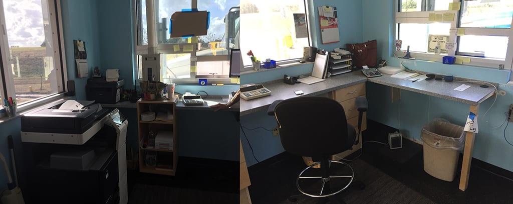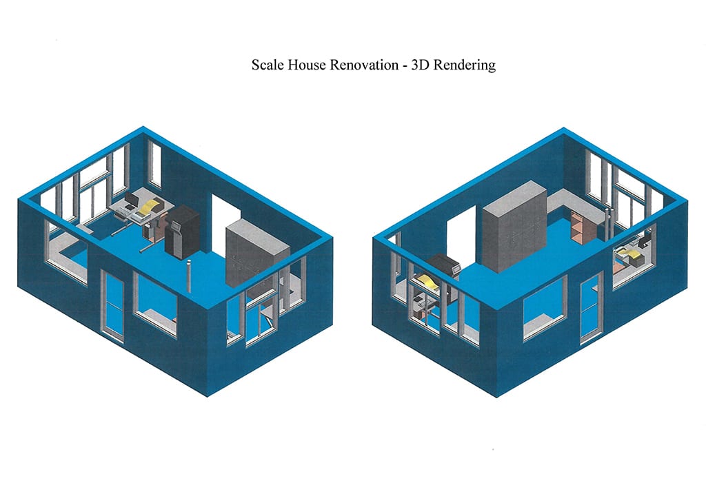 The main facet of the renovation will be to remove the existing windows and bank drawers, and install new, larger quick-serve windows. This will allow both the scale house employees and the landfill customers to have easier transaction access, and expedite payment process. The interior of the scale house will receive a make-over as well. The existing layout will be modified, and new adjustable desks will be brought in to help create a more streamlined and ergonomic working area.