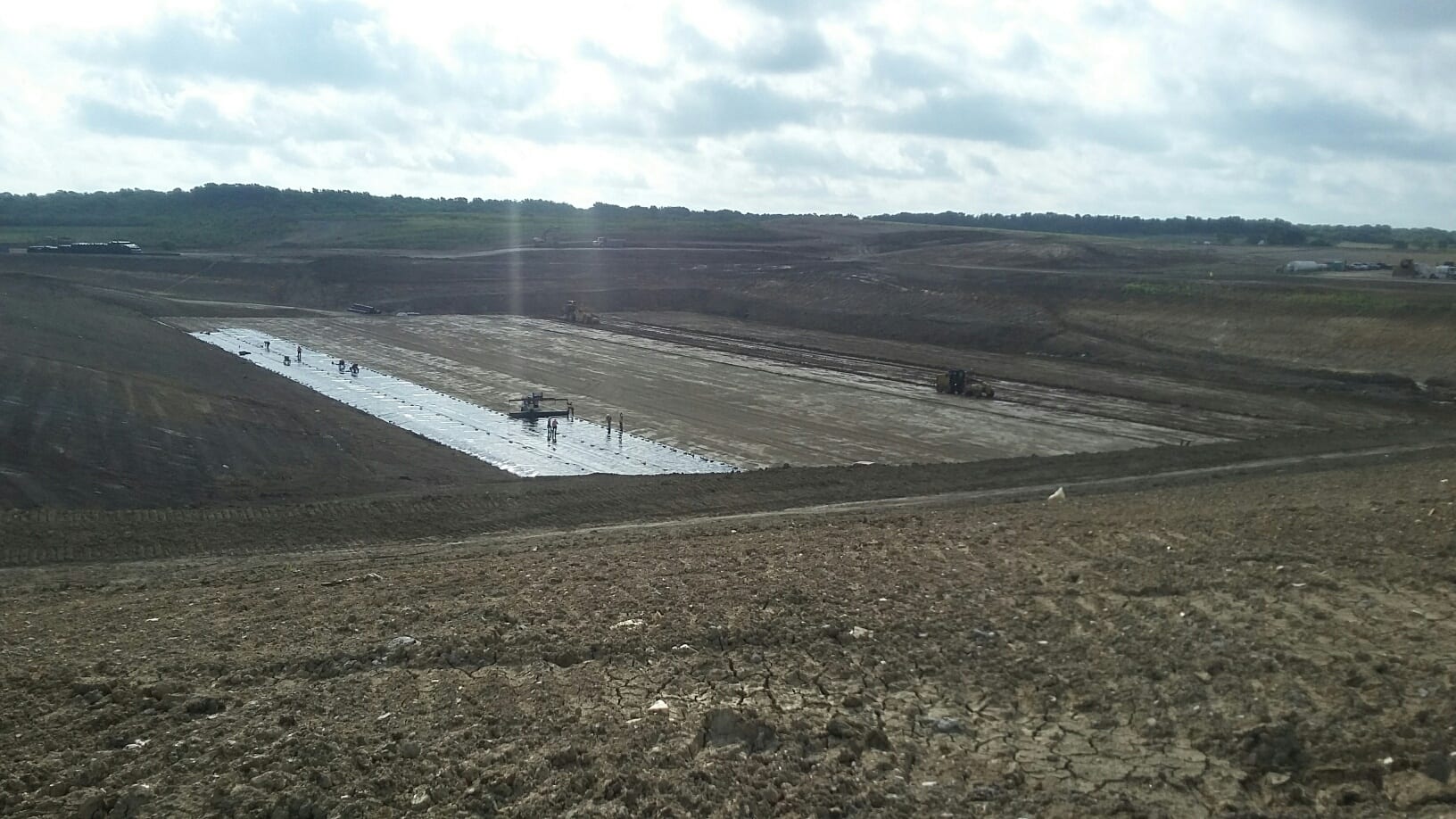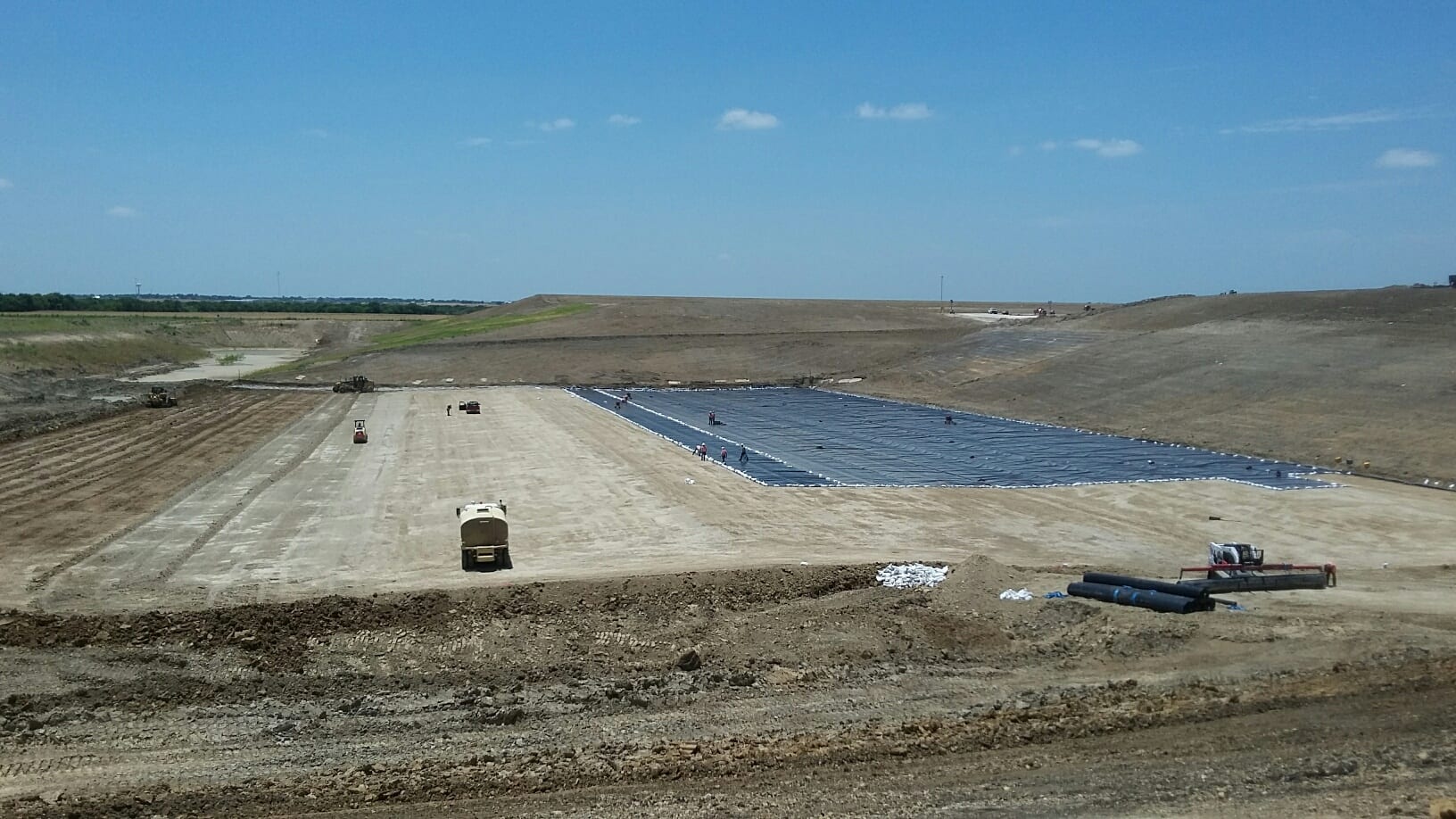 Earlier this week, COMANCO started liner deployment at a landfill just south of Dallas, Texas. Superintendent Tony Sanchez, and his crew of 12 men, are already facing tough conditions. Tony is doing a great job ensuring that his crew stays hydrated in the intense heat. In addition, high winds are present, requiring extra ballasting and careful planning. The scope of this project consists of installing over 300,000 SF of 60-mil smooth HDPE liner, followed by the same amount of 270-mil single-sided Geocomposite. Also included is approximately 1,000 LF of tie-in to existing liner and 1,000 LF of rain flap. Tony and crew expect to finish up this project in just under two weeks.