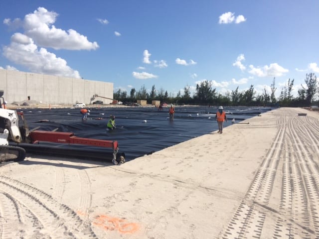 A COMANCO crew led by Foreman Alejandro Solis began work for a third building at a South Florida Corporate Complex. The crew began by installing ½ of the over 3,500 liner feet of Geo Vent designed to direct harmful gasses away from the building. The crew then safely installed 125,000 square feet of 60 mil HDPE liner to cover the first half of the building with a vapor barrier on this brownfield reuse project. The team is dedicated to providing our signature quality and service to help safely install the building’s Gas Mitigation system. This week Alejandro and his crew will be finishing up the first mobilization and look forward to returning to complete the installation of over 2000 liner feet of 6” Schedule 80 PVC piping to complete the project on the next mobilization.
