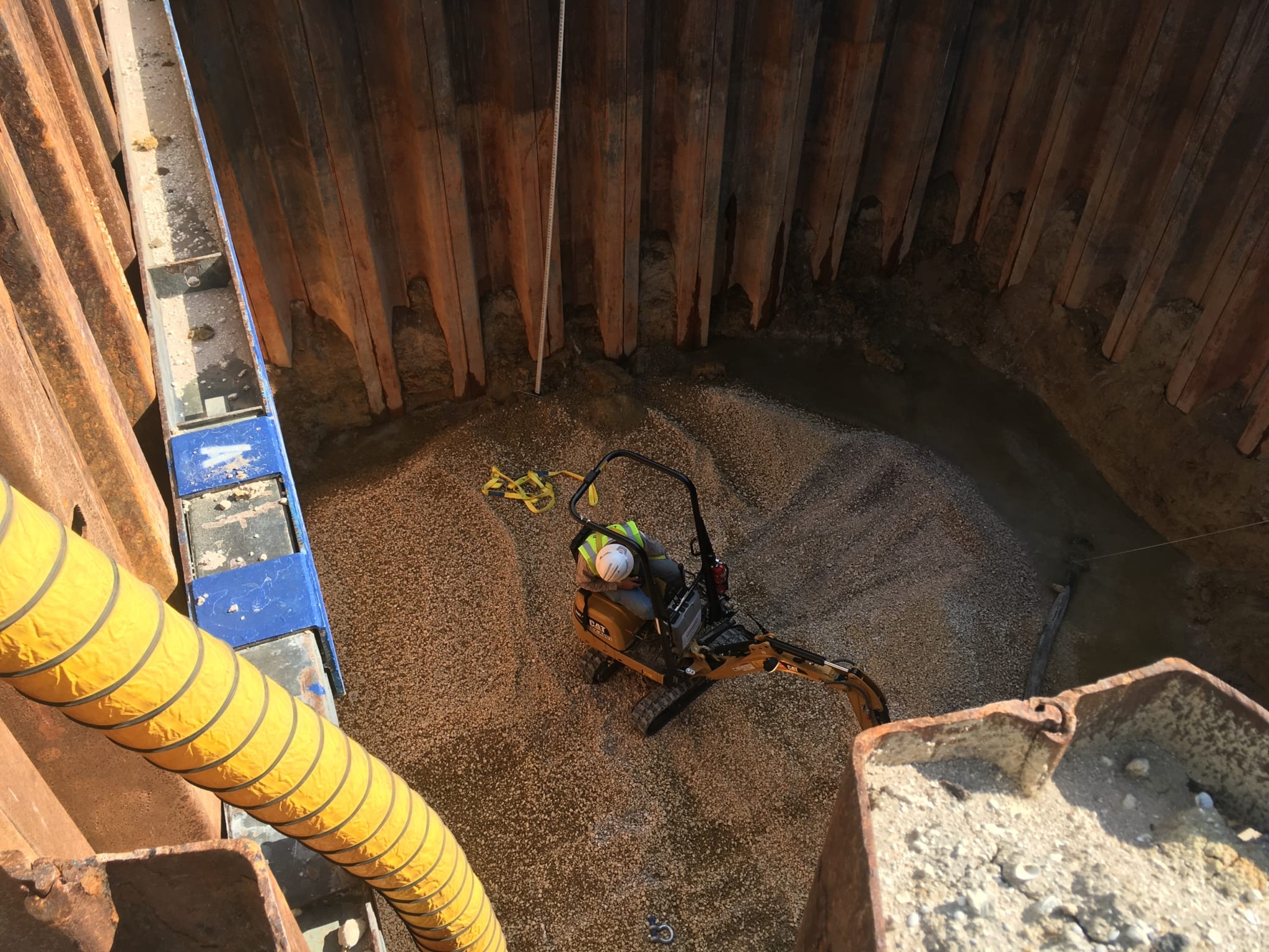 As seen in attached photos, the team flew a micro-excavator inside sump 1 area to level rock and remove any excess soil from the sheeting walls in preparation for the sump installations. With safety as our number one priority, COMANCO’s safety director Carlos Campos supervised the first two days of this method.