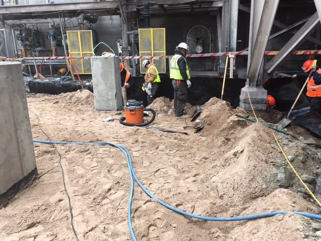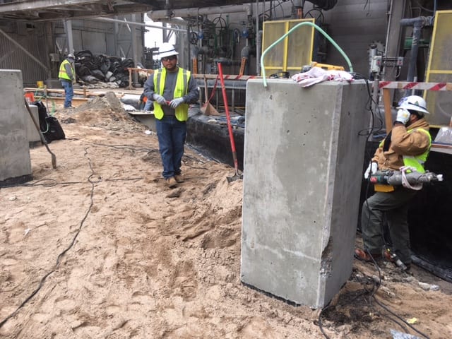 on an MCC upgrade at a phosphate facility in Eastern Idaho recently. The job consists of installing and custom fitting HDPE liner to concrete structures and existing concrete containment. The crew has been working around adverse weather conditions with late season snow squalls occurring often. Great job guys keep up the good work.