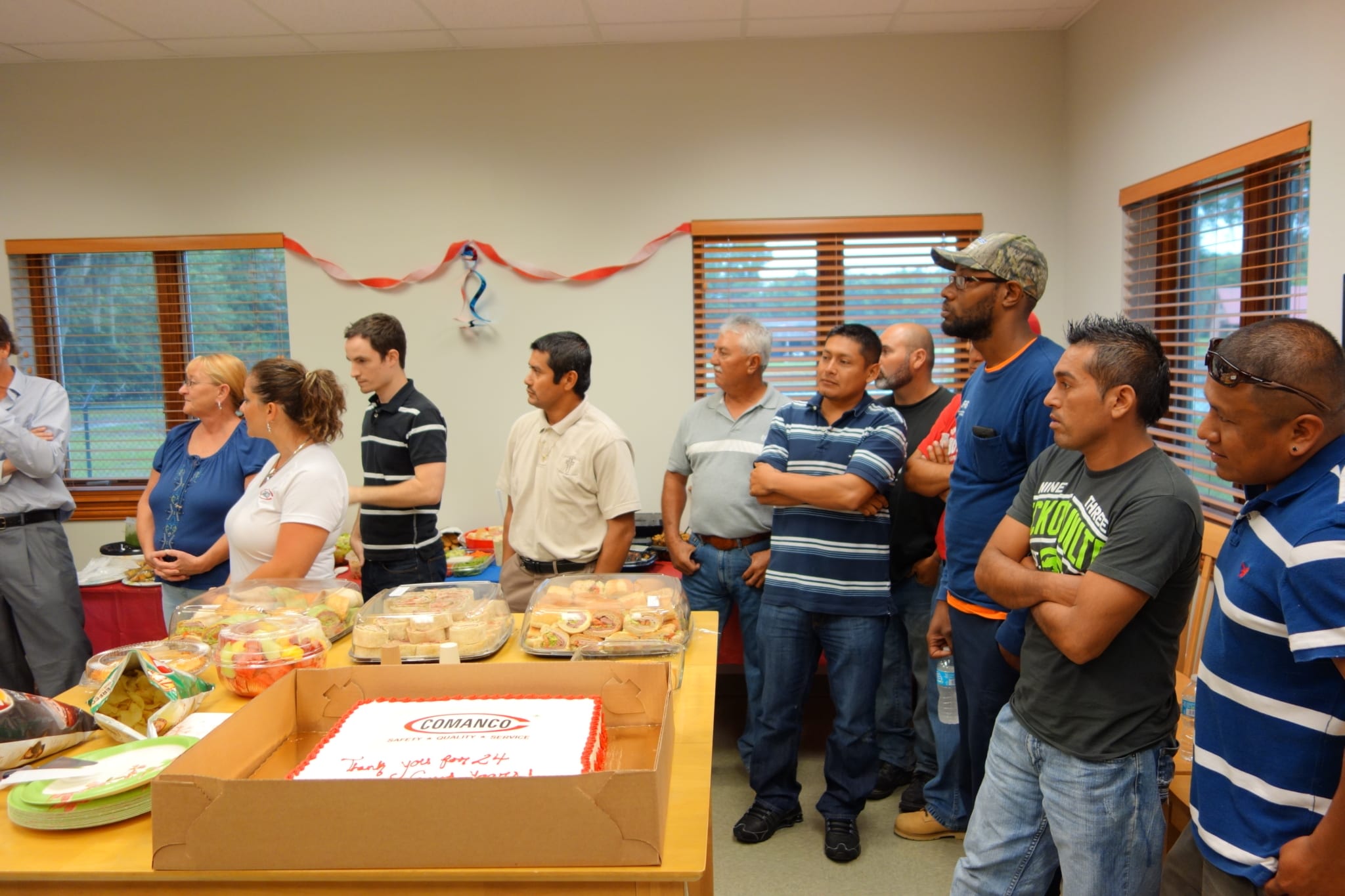 To celebrate COMANCO’s 24 years in the liner business, COMANCO employees enjoyed a pot luck lunch, at the Plant City office, on Monday, July 1, 2013. President Mark Topp and CEO TR Johnson shared a couple of stories from the their early days in the business and thanked everyone for all their hard work in helping to make this special day a reality. Everyone enjoyed great food, great cake and lots of laughter. Thank you to everyone who participated and a special “thanks” to Lucy Lopez, in HR, for her hard work in planning today’s event! We all look forward to another successful year with COMANCO! Please enjoy some photos below.