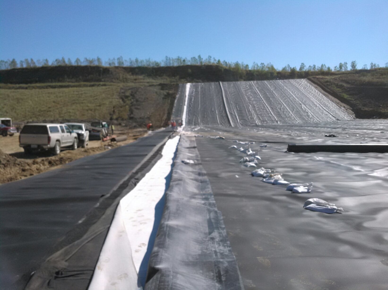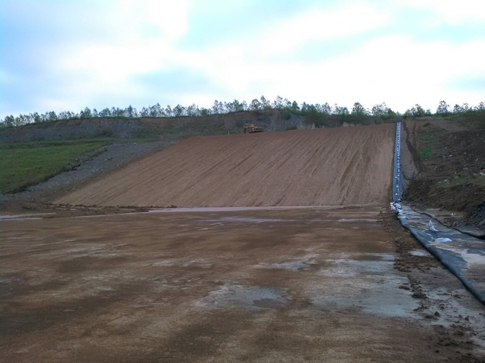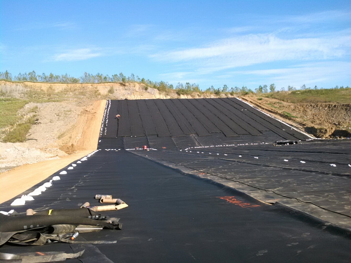 A COMANCO crew led by Project Superintendent Larry Graham is almost finished with a geosynthetics installation for a cell expansion project outside Kansas City, MO. To date, work completed consists of a 4 layer, 4 acre lined containment system. From subgrade to protective cover the system includes: 60-mil textured HDPE geomembrane layer, geosynthetic clay liner layer, 200-mil geocomposite layer then another 60-mil textured HDPE primary layer. The team also lined an LCS trench that spanned the cell with geomembrane rub sheets and separation textiles as well as a large sump area and riser on the east end of the cell. COMANCO will be going back later this month to complete the final 2.5 acres of geotextile layer above the granular drainage layer.