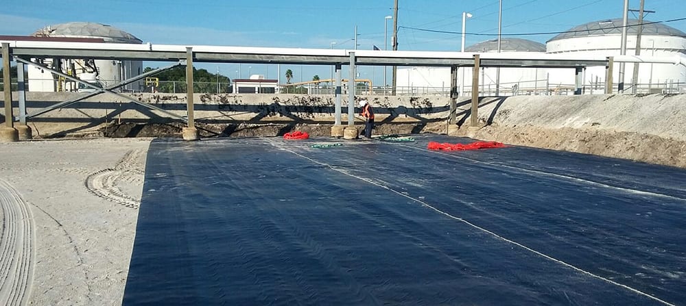 COMANCO has completed its work repairing and upgrading a secondary containment area in Tampa, FL.  The crew, led by Superintendent Bill Newman, finished the project which included a wide variety of tasks.  The area first required COMANCO to dewater and remove the existing vegetation that had overgrown the area.  They then imported clean fill to prep the subgrade for GCL installation.  Once the GCL was installed, the crew imported additional fill to cover the GCL and installed a layer of Nonwoven Geotextile and #57 limestone to finish.