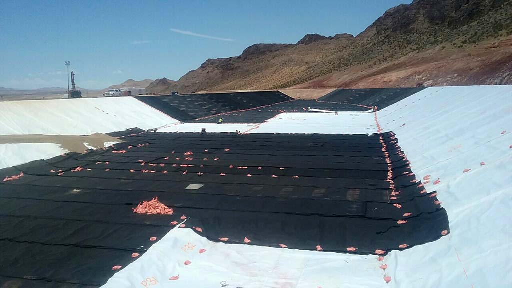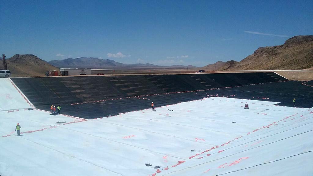 COMANCO crew completes evaporation pond in the overwhelming Nevada heat. With ambient temperatures at 116 degrees and temperatures on the liner at 155-160 degrees, Superintendent Tony Sanchez and crew worked through extreme heat to bring another COMANCO project to completion. The 5.5-acre evaporation pond consisted of 4 layers of geosynthetics material; close coordination with the general contractor on site had to be maintained to keep the project moving on schedule. This was paramount to keep our customer’s expectation and the end result of on-time performance for their operations.