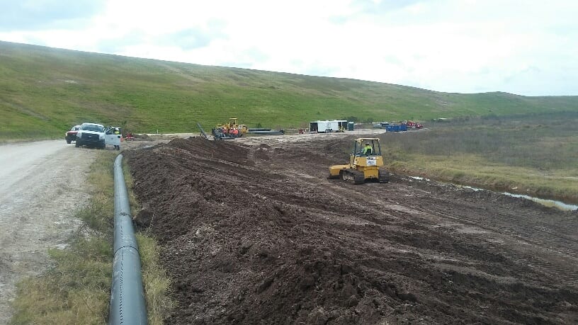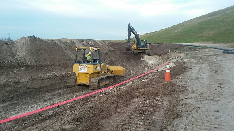 A COMANCO crew led by Project Superintendent Larry Graham and Foreman Jeremy Giles has completed a seepage drain project at a chemical plant gyp stack closure in Central Florida. The crew began installing a 12″ HDPE pipe drain from an existing manhole 17′ below grade and continued with approximately 2,000 feet of pipe installed as well as a new manhole and cleanouts. The crew is continuing work at the site repairing header pipes, Fabriform, and liner around the gyp stack.