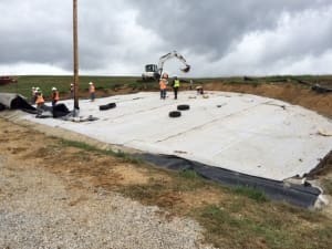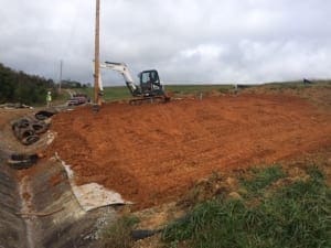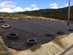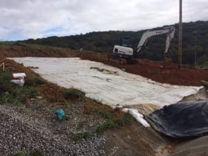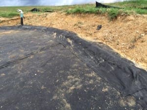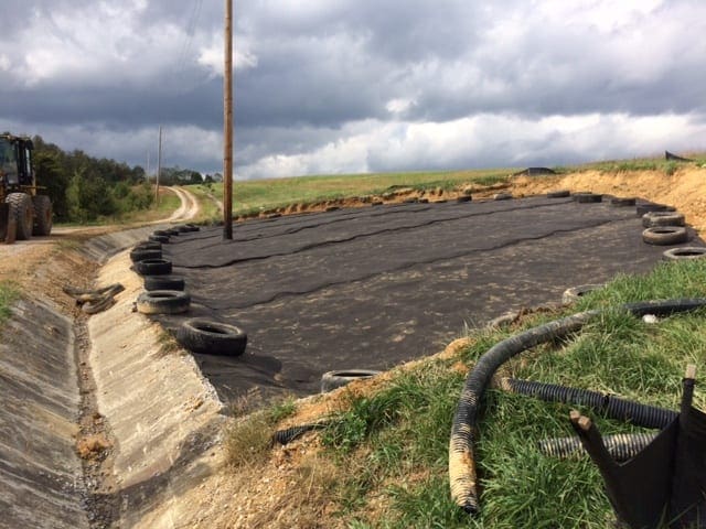 COMANCO Environmental performed remediation work to an existing landfill closure cap in Harriman, TN. A 4,000 SF area of the cap needed to be enhanced to help withstand stormwater damage that has occurred in the past. Once this area was excavated down to sub-grade, a new double-sided geocomposite was deployed. A new gas vent pipe system was installed over the geocomposite followed by a layer of 80-mil gundseal (a geomembrane / GCL hybrid product). 18″ of protective cover soil topped with mulching and seeding was then placed to match the surrounding existing conditions.