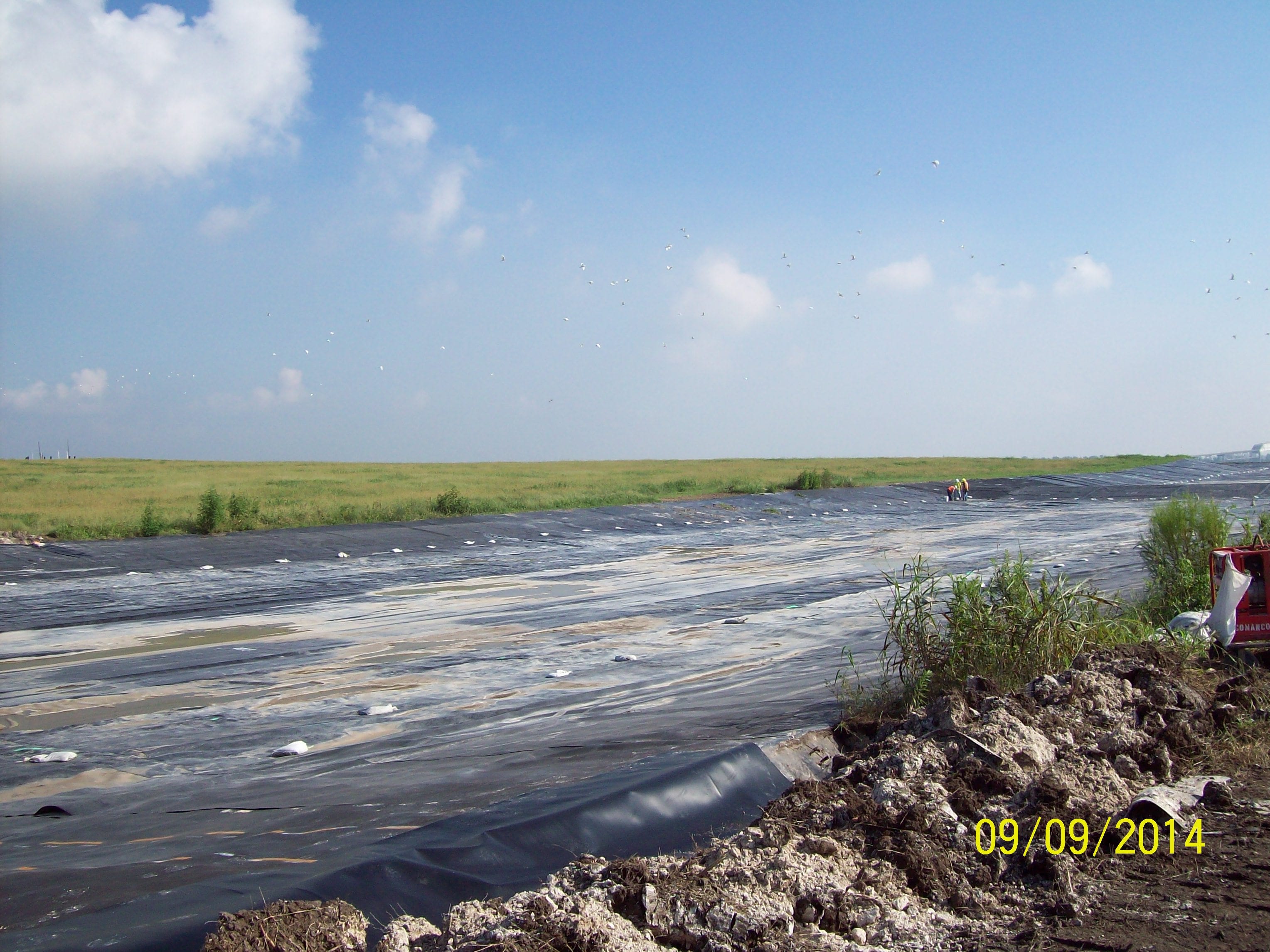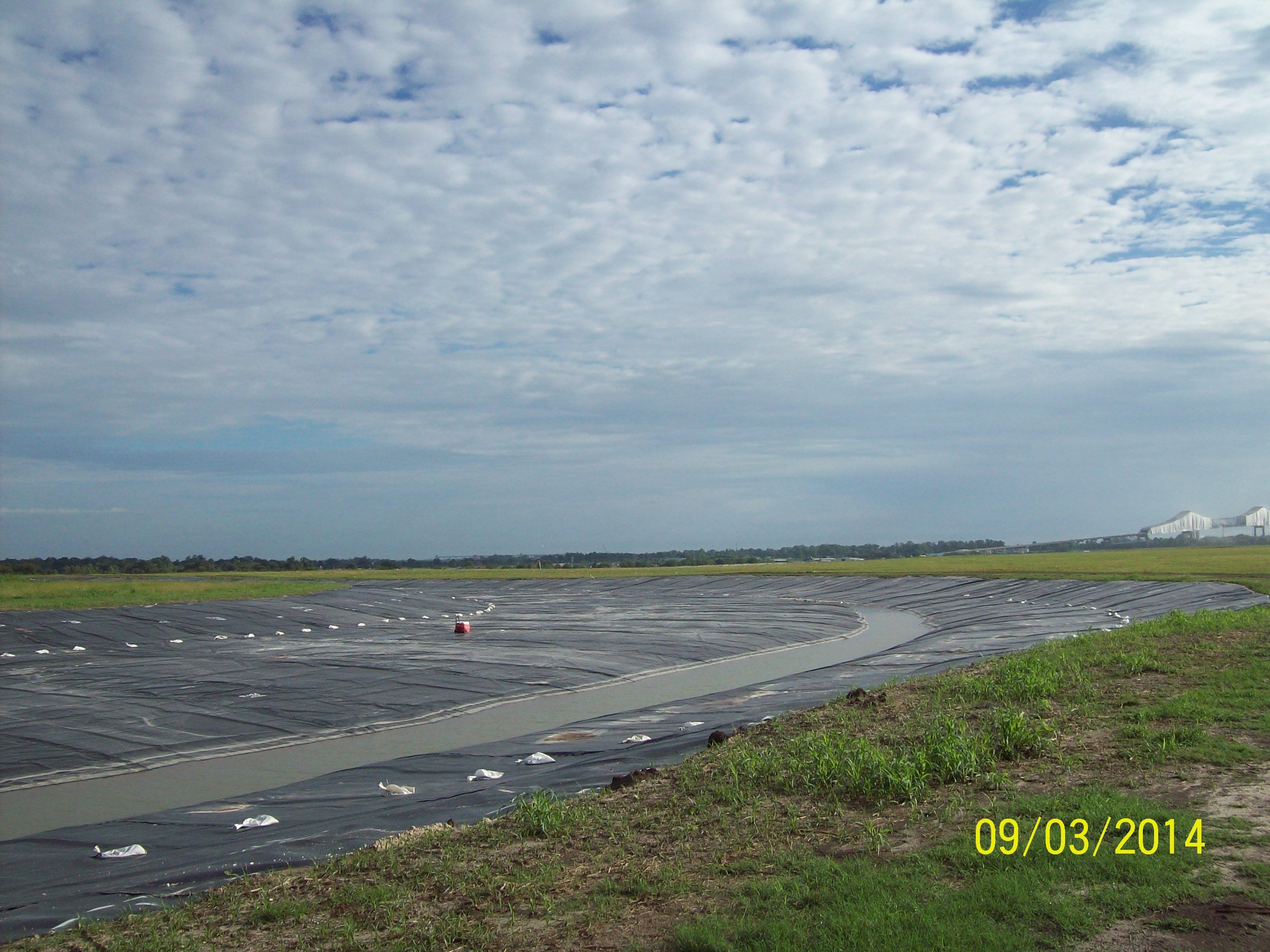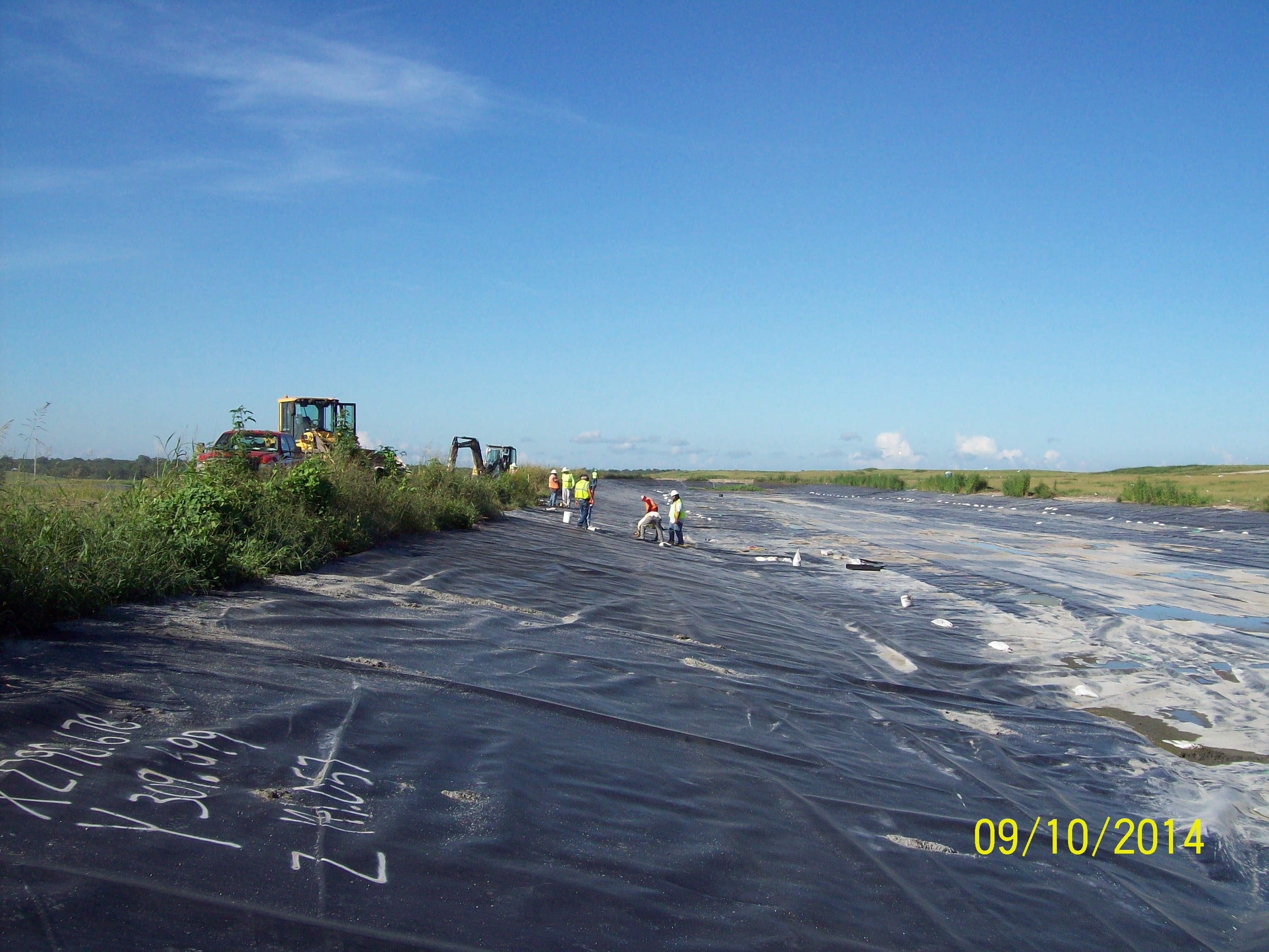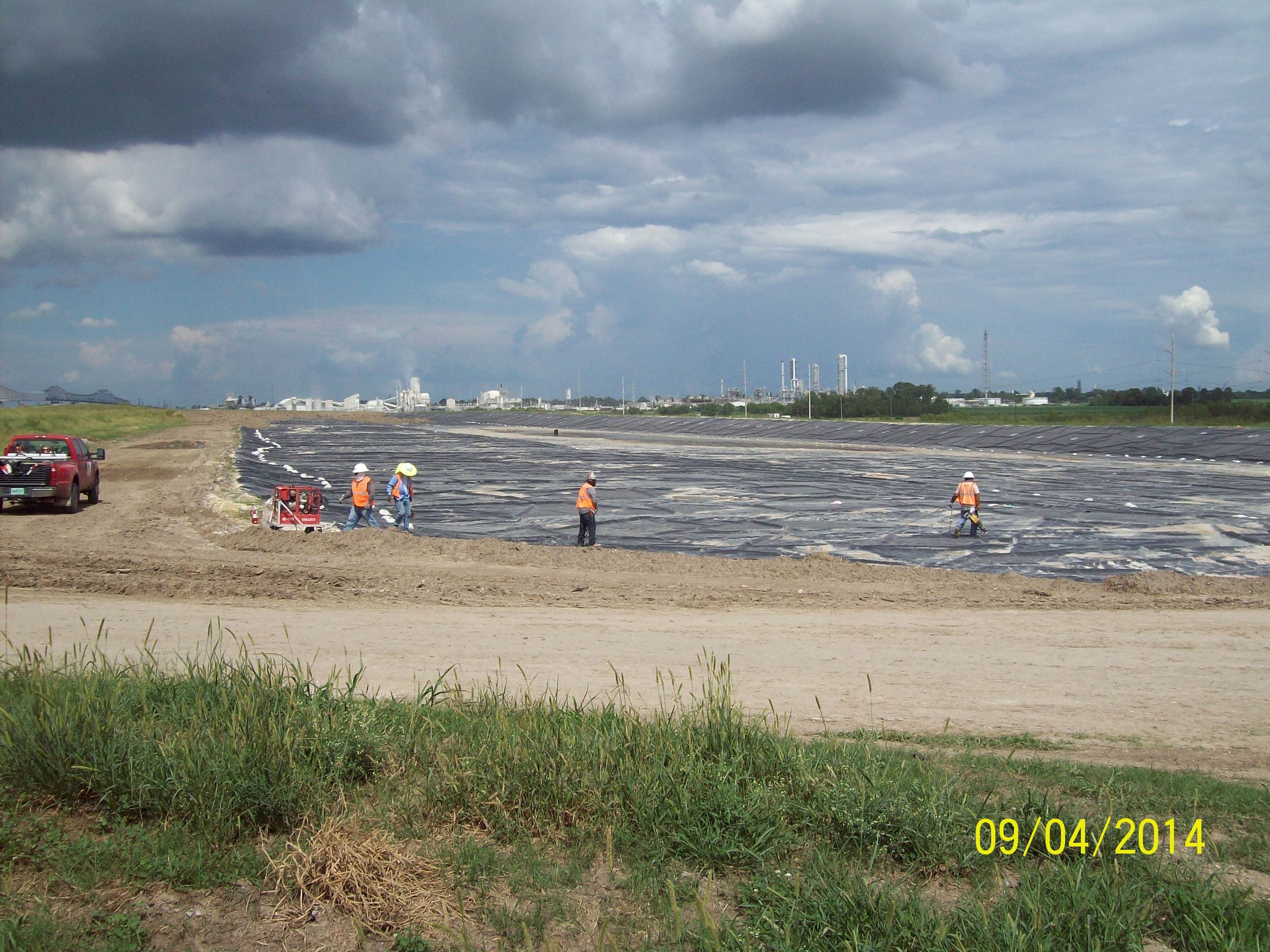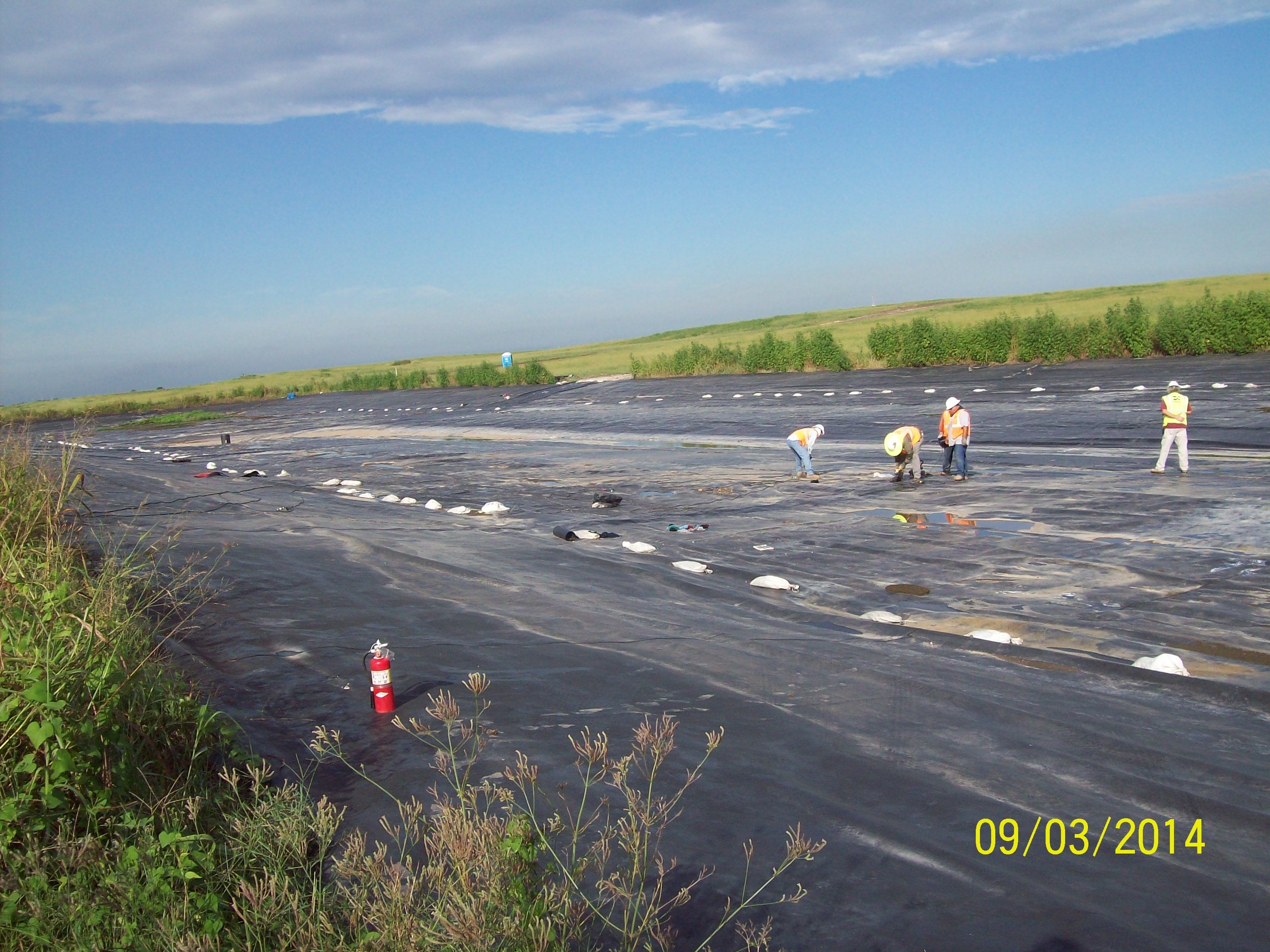 COMANCO completed the installation of 40 mil HDPE liner last week on a pond closure project in Louisiana. The project totaled approximately 1,600,000 SF of 40 mil liner installed with 40,000 SF of 60 mil HDPE liner installed on three rain berms. This job started in March, and the crew is wrapping up the project with some repair work and liner disposal from other ponds. The crew has been led by Project Superintendent Pablo Medina, Louisiana Area Manager Scotty Martone, Senior Project Engineer Nick Bridges, and Project Engineer Mohammad Lutfiyya.