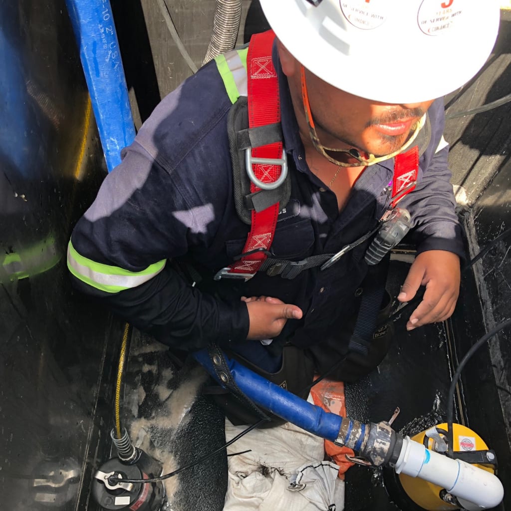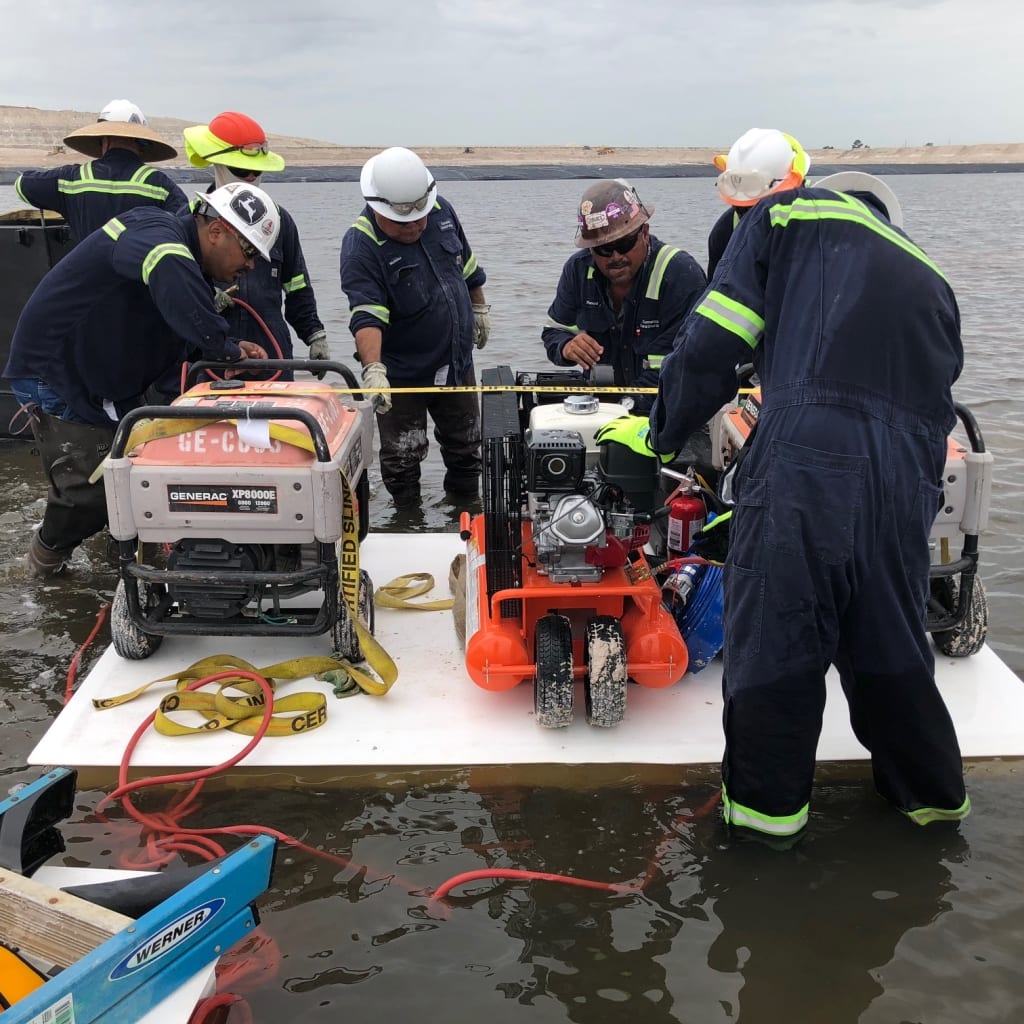 The crew, led by Superintendent Jesus Delgado, used creativity to repair a damaged seam located 300ft in the middle of a pond. With a well-designed safety plan in mind, they isolated the damaged seam and successfully completed the repair. Teamwork, safety, and ingenuity resulted in a job well done!