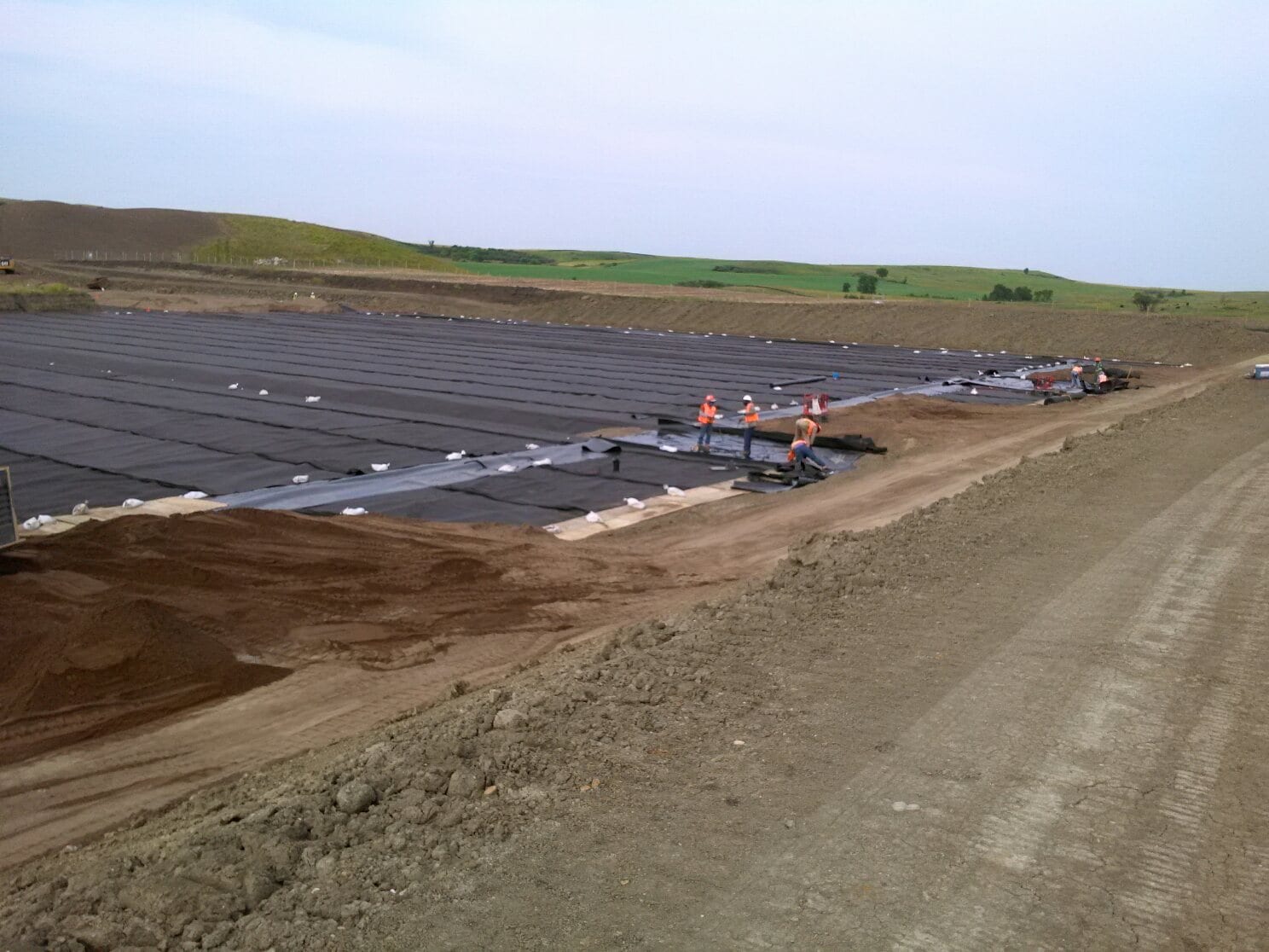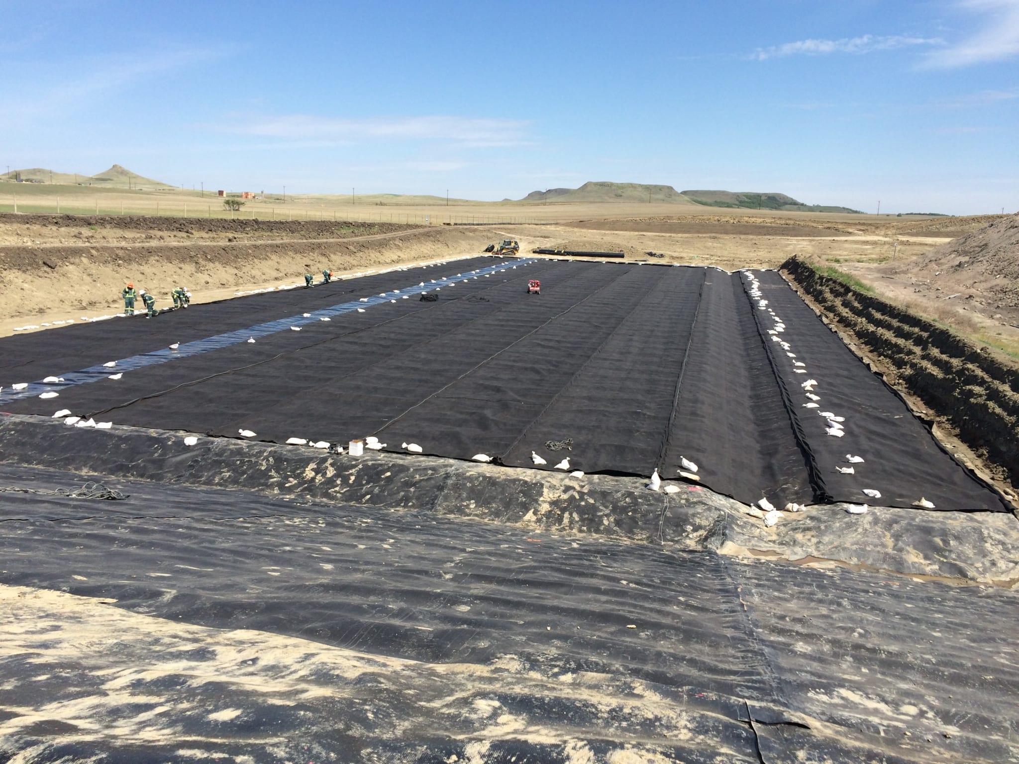 COMANCO Environmental recently completed the expansion of a landfill located in North Dakota. The project consisted of three new cells that tied into multiple existing cells. The crew installed over 310,000 SF of 60mil smooth HDPE geomembrane, 30,000 SF of textured HDPE geomembrane, 22,000 SF of 40mil textured geomembrane and over 415,000 SF of 200mil geocomposite. The crew also installed over 1,800 LF of rain flaps and over 1,800 LF of tie-in to existing cells. The project was led by Project Manager Dan Ward, Project Engineers Greg Pignataro and Nick Rauh, Superintendent LeRoy Smith, and an 11 person crew. The project was finished ahead of schedule while still maintaining the COMANCO values of Safety, Quality, and Service. Good job team on another great project!