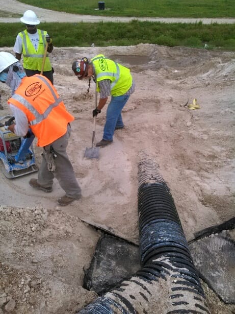 COMANCO has been working the past few weeks on two corrugated HDPE stormwater pipe repairs on the side of a gyp stack at a Central Florida chemical plant. The crew, led by Project Superintendent Charlie Ingle, has just finished up with the east repair yesterday. The work has involved a great deal of exploratory excavation as the team investigated and figured out the best way to improve drainage coming from the gyp stack. The crew has since moved back over to the north repair where they will work on completing that side as well.