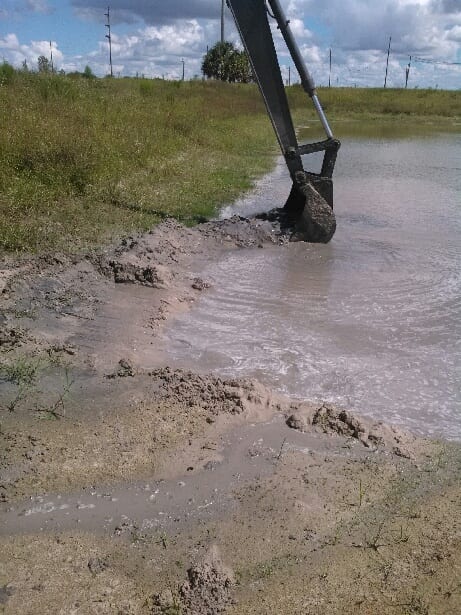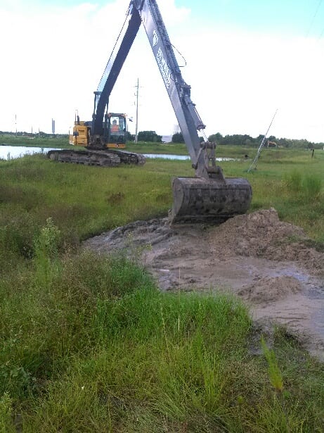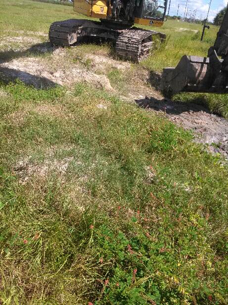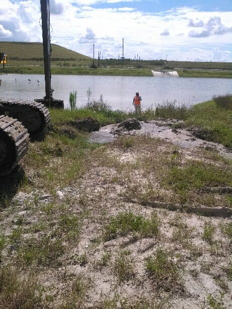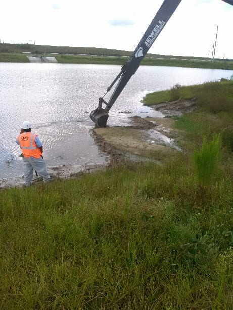 A COMANCO crew led by Project Superintendent Charlie Ingle completed a pond washout repair project at a closed chemical plant site in Central Florida yesterday. Some of the slopes in a nearby detention pond had seen some erosion from the rainy season, and the crew used a long reach excavator to dress the slopes back to grade. The crew placed sod in the areas to complete the work.