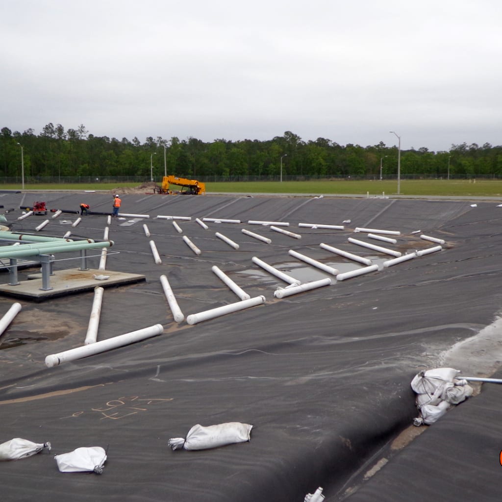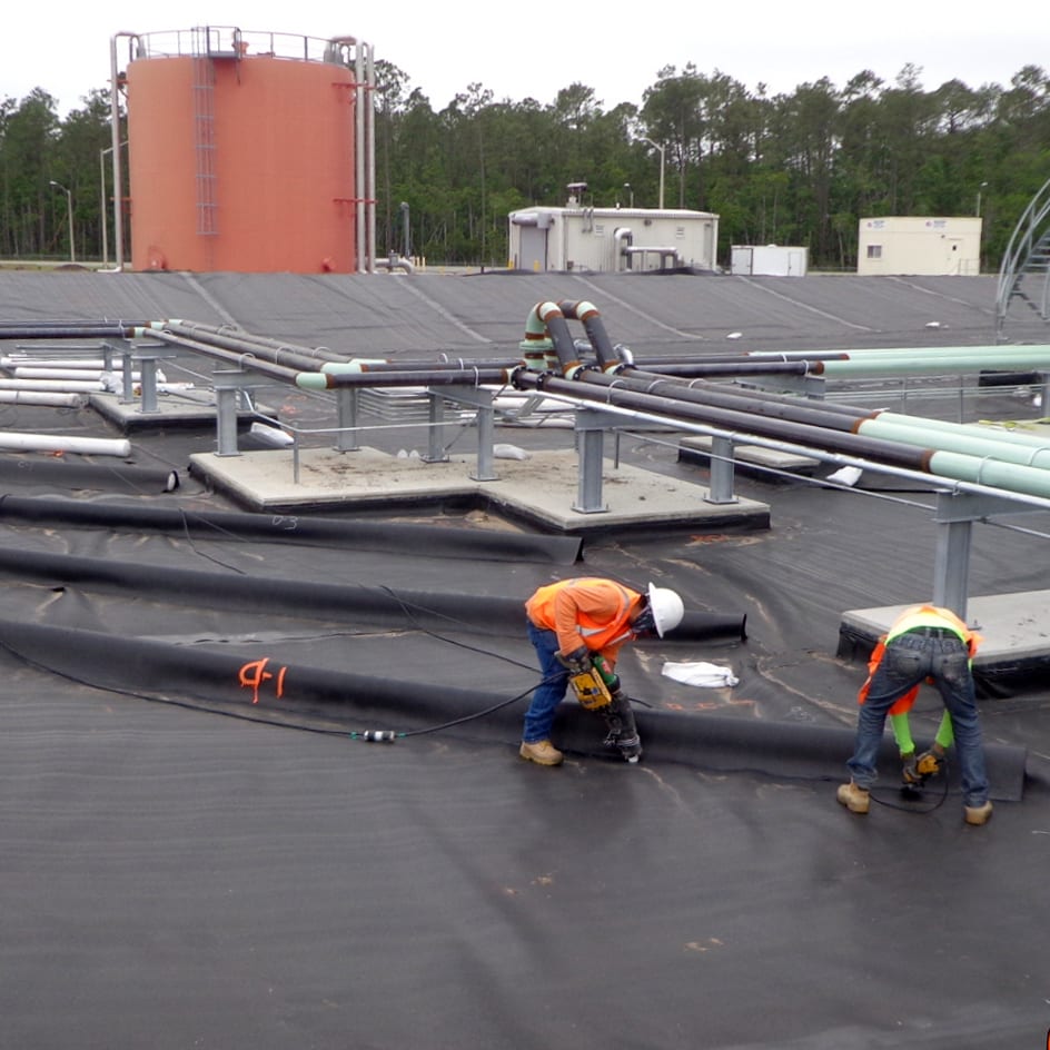 COMANCO Environmental is working on lining two secondary tank containments in Jacksonville, Florida which includes the installation of approximately 80,000 SF of 60-mil textured conductive geomembrane.