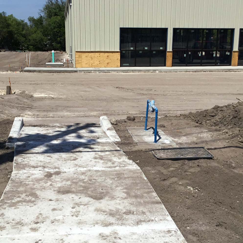 The DOT work, creating a new deceleration lane for site access, is almost ready for asphalt. All underground work is completed and approved and the parking lot is up next. The storefront windows and doors are installed, and the overhead bay doors for vehicle service will be installed first of next week, completing the building dry-in. Once that is completed, the interior of the building will really start to take shape, as drywall won’t take long in installation to create the new retail service and customer lounge areas. Check back for more updates!