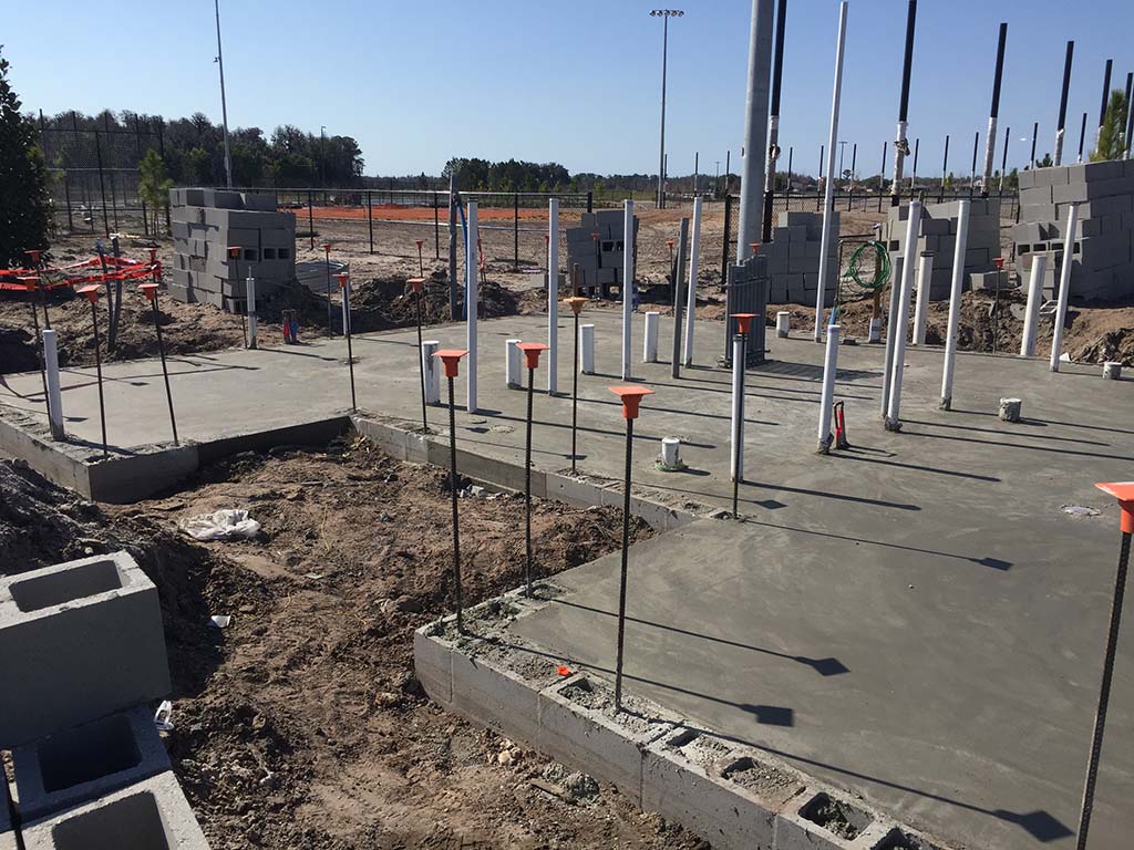 COMANCO continues to progress at the Starkey Ranch Sports Complex.  Floor slabs and stem walls have been poured at the Concession and standalone Restroom buildings.  The pre-engineered metal Maintenance Building slab is being prepped for vapor barrier, rebar, and anchor bolt installation in anticipation of inspection and concrete pour the first of next week.