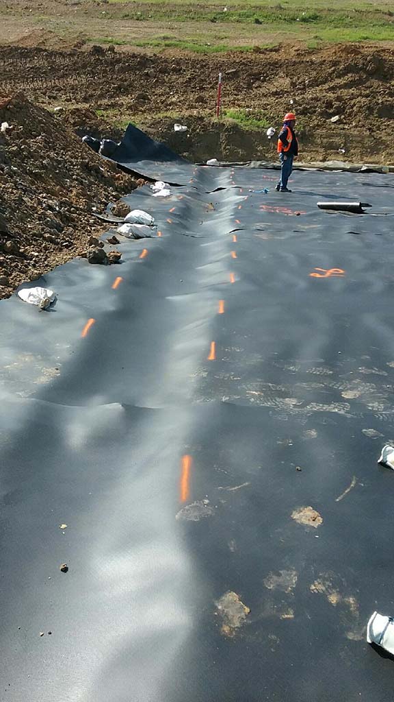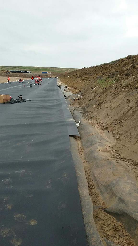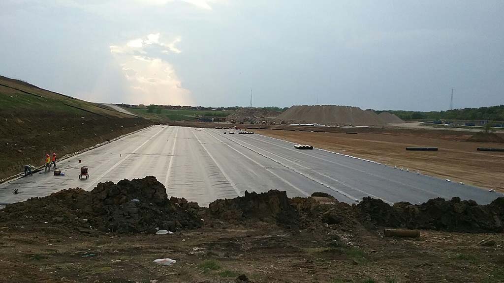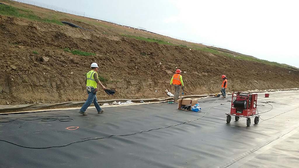 A 12-man COMANCO crew led by Superintendent, Pablo Medina, recently started the liner installation for a cell construction project at a landfill in Arlington, TX. The project consists of over 382,770 SF of 60mil Textured HDPE Geomembrane and 300mil single-sided Geocomposite. The crew has just finished the 60mil Textured HDPE Geomembrane installation and is currently working on installing the 300mil single-sided Geocomposite. Keep up the hard work and stay safe!